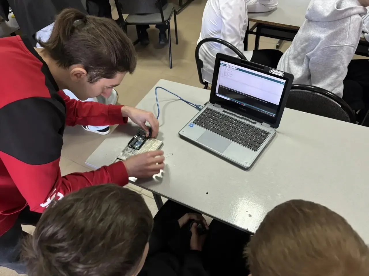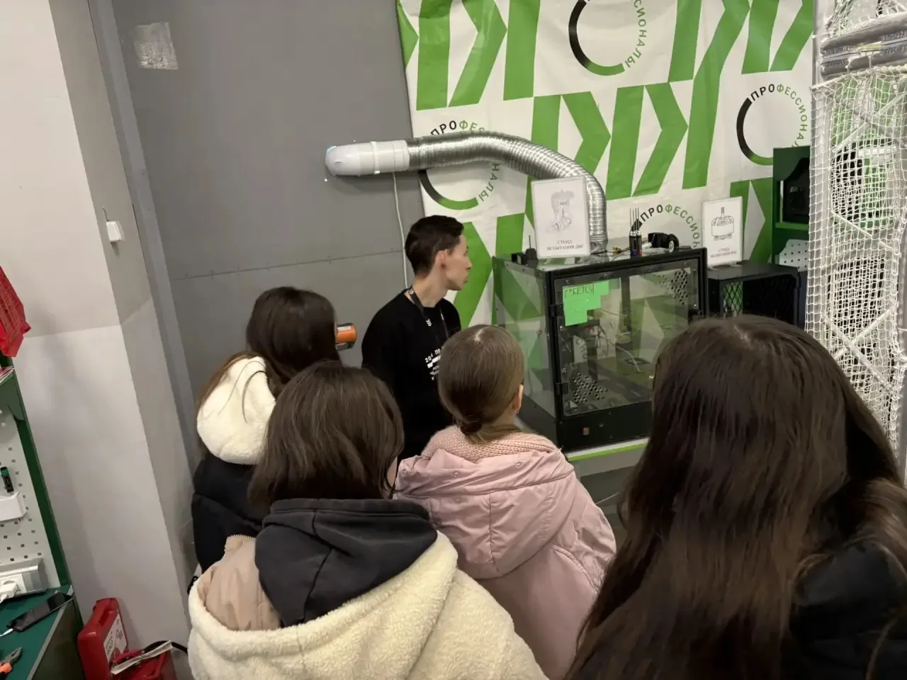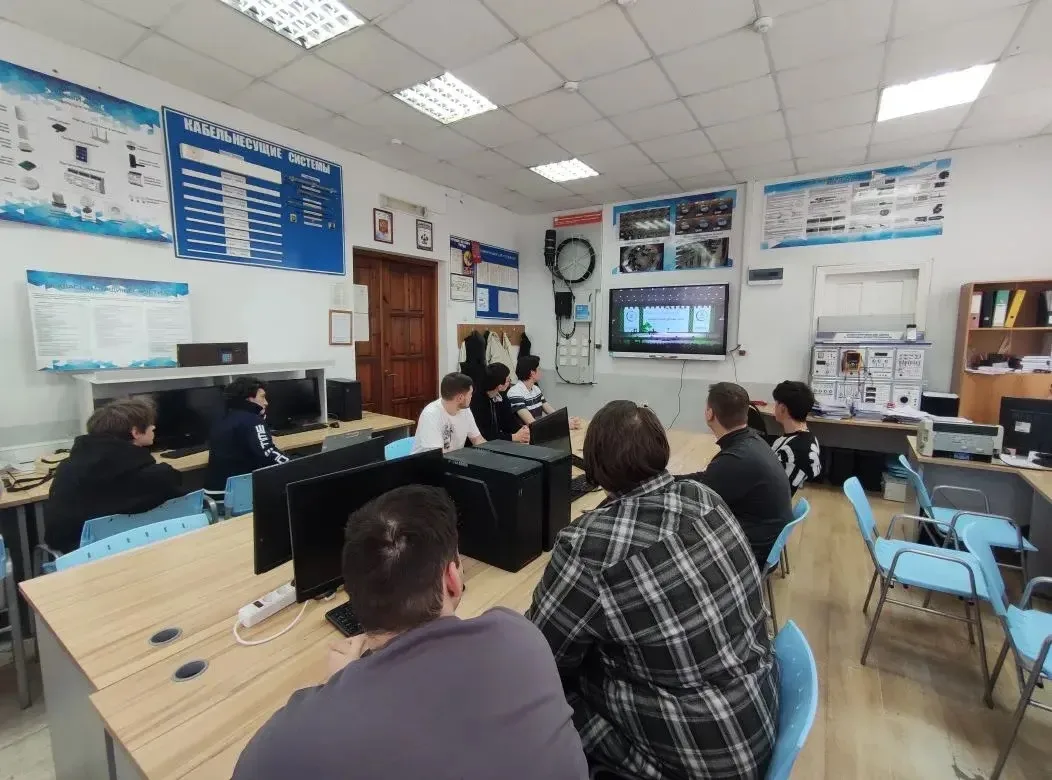 ⚡️🎓Эксперт чемпионата Григорян Н.В. рассказал ребятам о том, что происходит в мастерских, а студенты Палаткин Н. и Пономарев С. провели для учащихся профессиональные пробы по специальности «Компьютерные системы и комплексы».👨💻