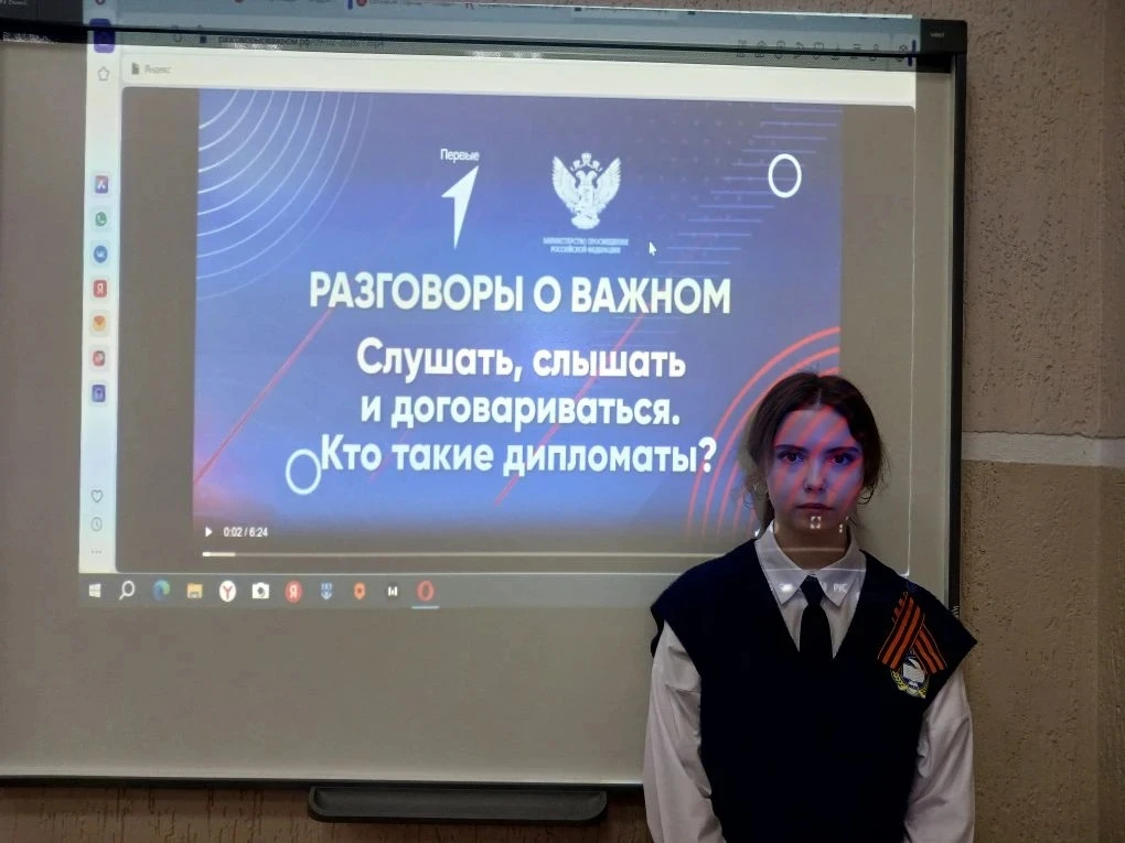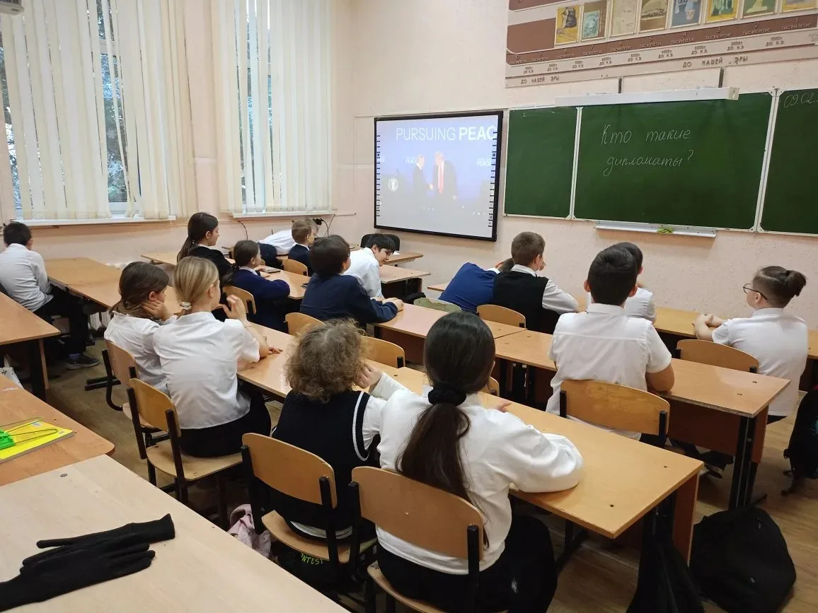В гимназии начался с Разговоров о важном. Сеголня тема Разговоров "Слушать, слышать и договариваться. Кто такие дипломаты?" И тема выбрана не случайно.