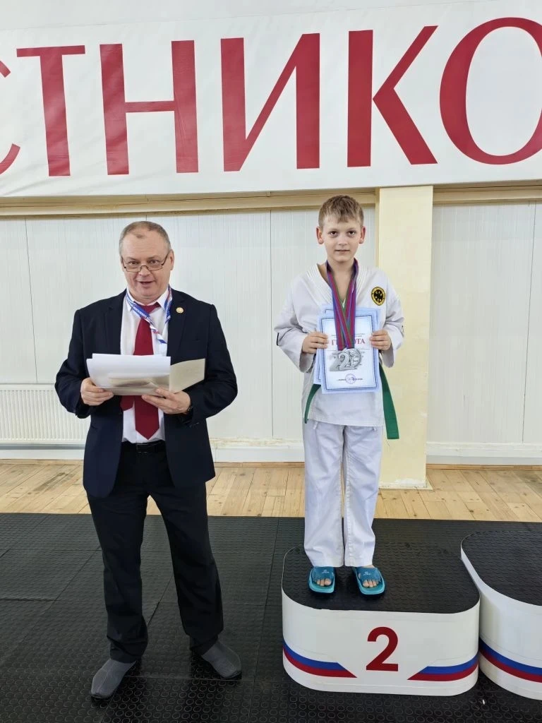 Чурилов Никита, ученик 3 А класса, занял 2 место в разделе Ката соло с оружием 8-9 лет и 2 место в разделе ОК ката годзю рю 8-9 лет.