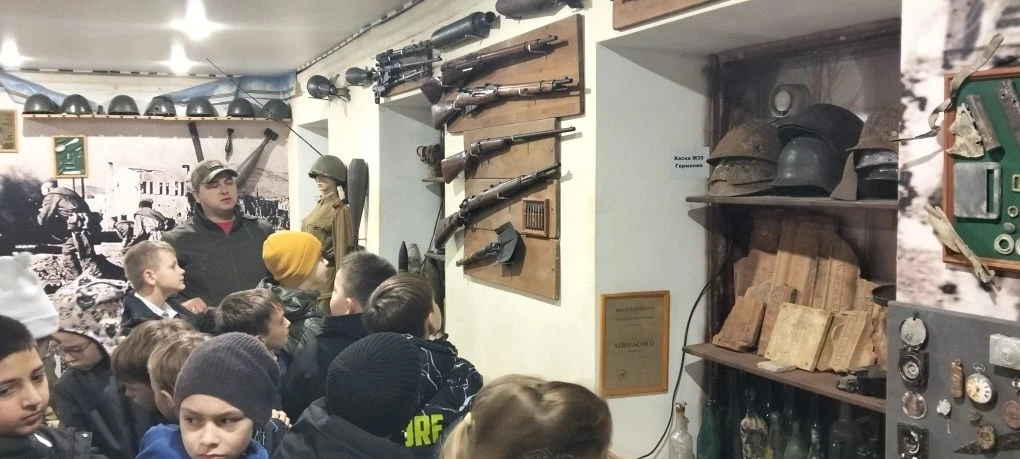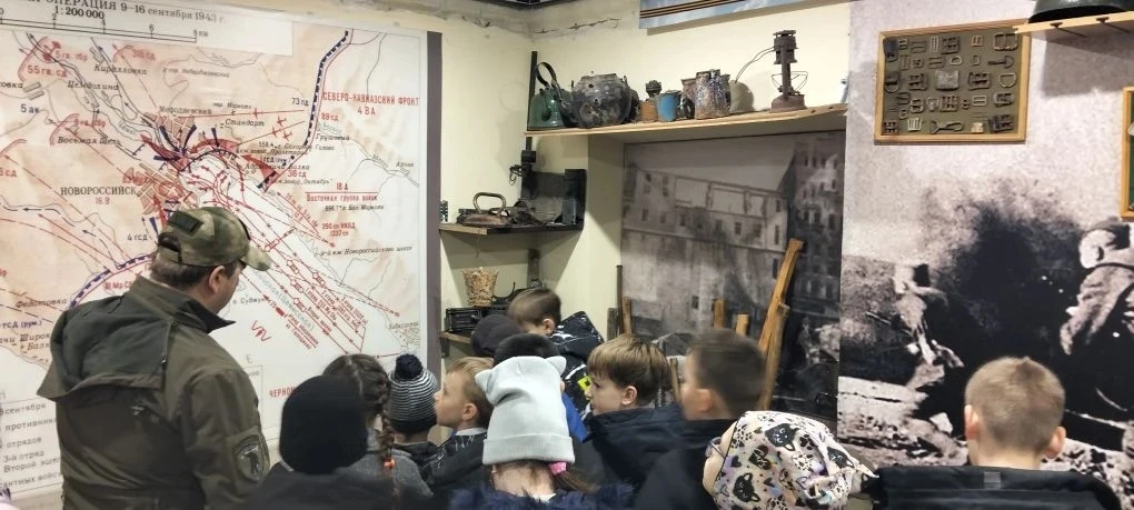 В рамках патриотического воспитания подрастающего поколения ученики 3 А класса посетили Новороссийский центр поисковых работ. Поисковик Михаил Ломоносов рассказал ребятам о героической подвиге десанта под руководством Ц. Л. Куникова, познакомил детей с трофеями, найденными в лесах и окрестностях нашего города.