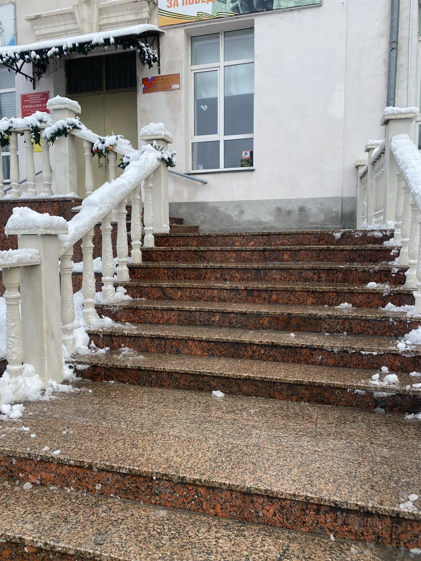 Снег около гимназии расчищен, ждем всех на занятиях!