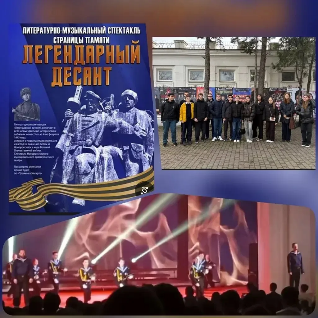 В рамках патриотического воспитания учащиеся 7-11 классов посетили городской театр и посмотрели литературно- музыкальный спектакль, посвящённый героической истории города-героя Новороссийска.