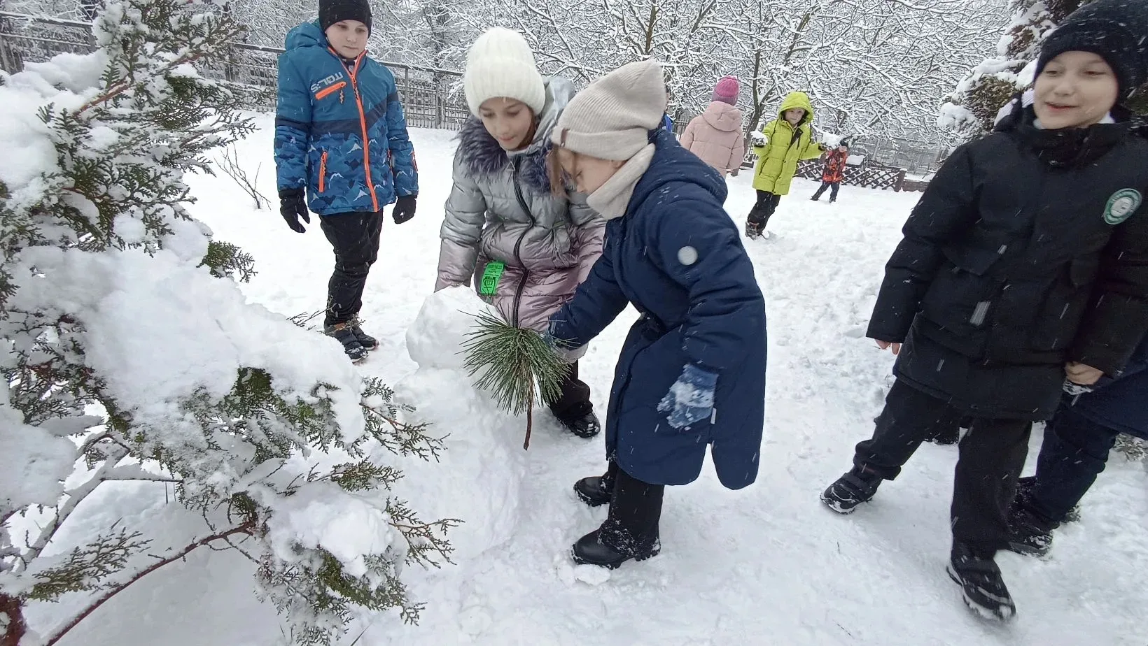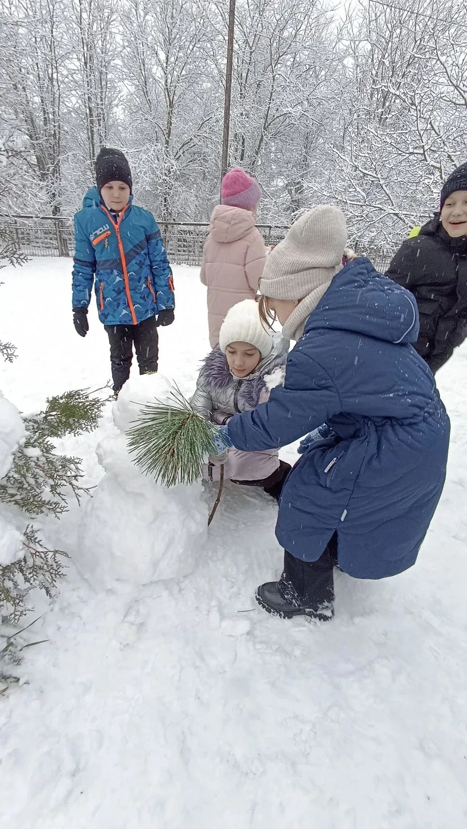 командная работа над снеговиком;