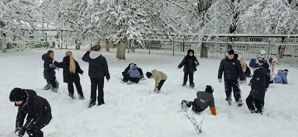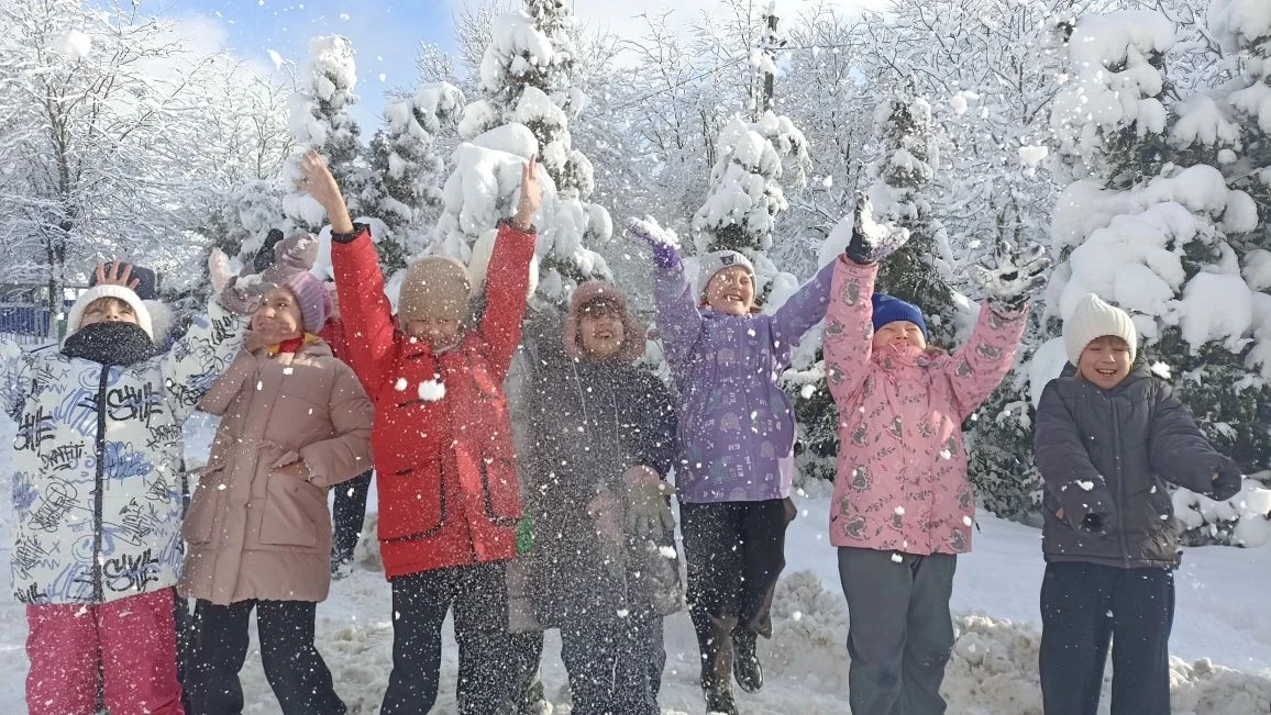 Наши ребята не скучают ни минуты: все перемены — в заснеженном дворе! 🏂⛸️