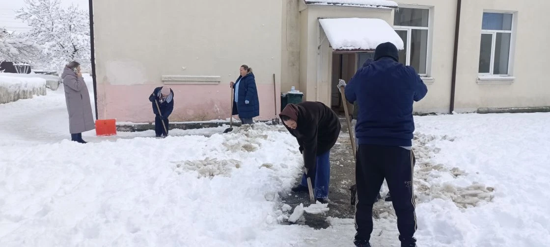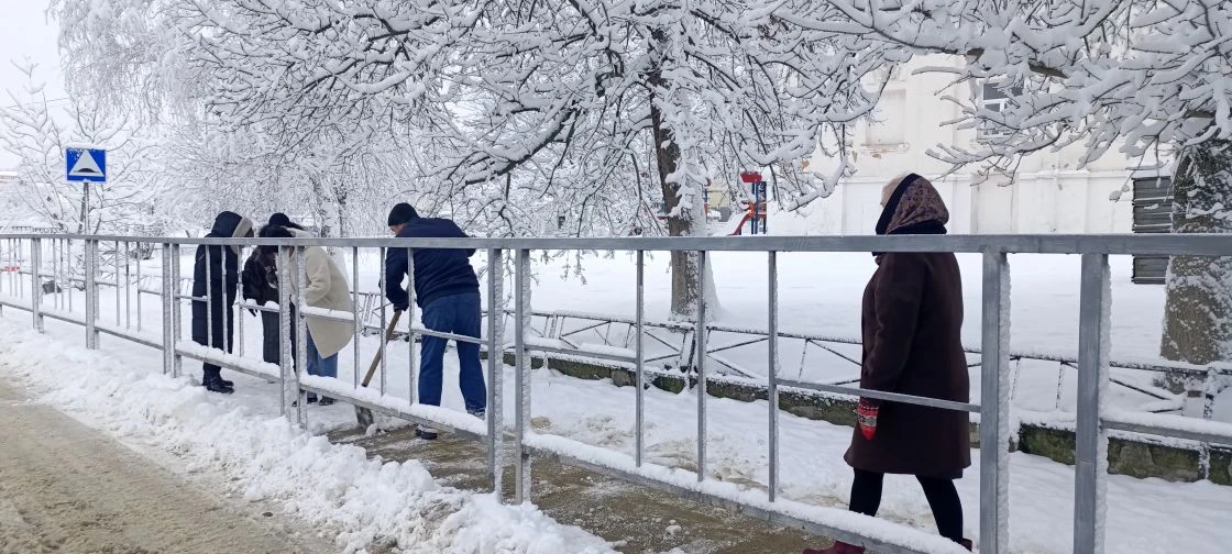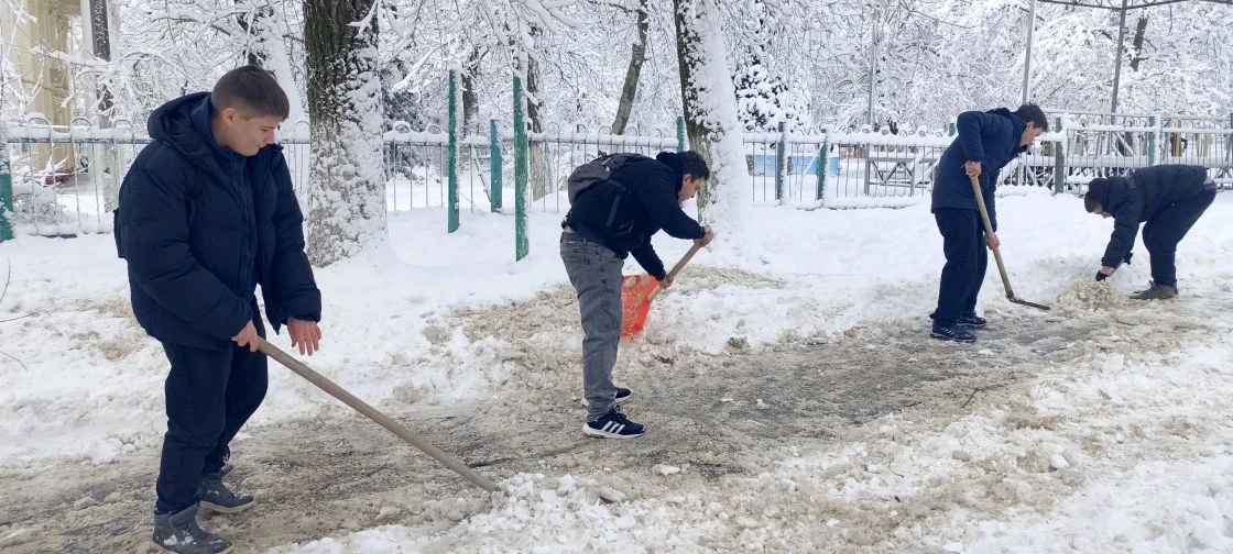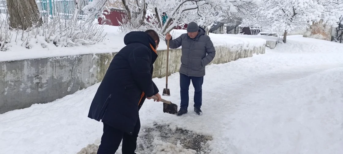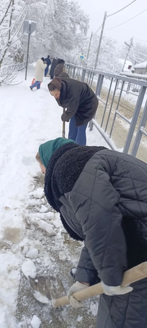 В борьбе со снежной стихией и очистке подходных путей к школе вышли наши педагоги! 👷♂️