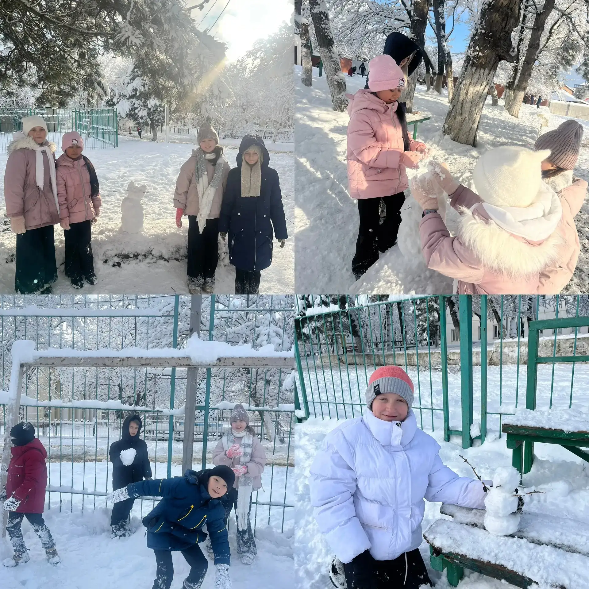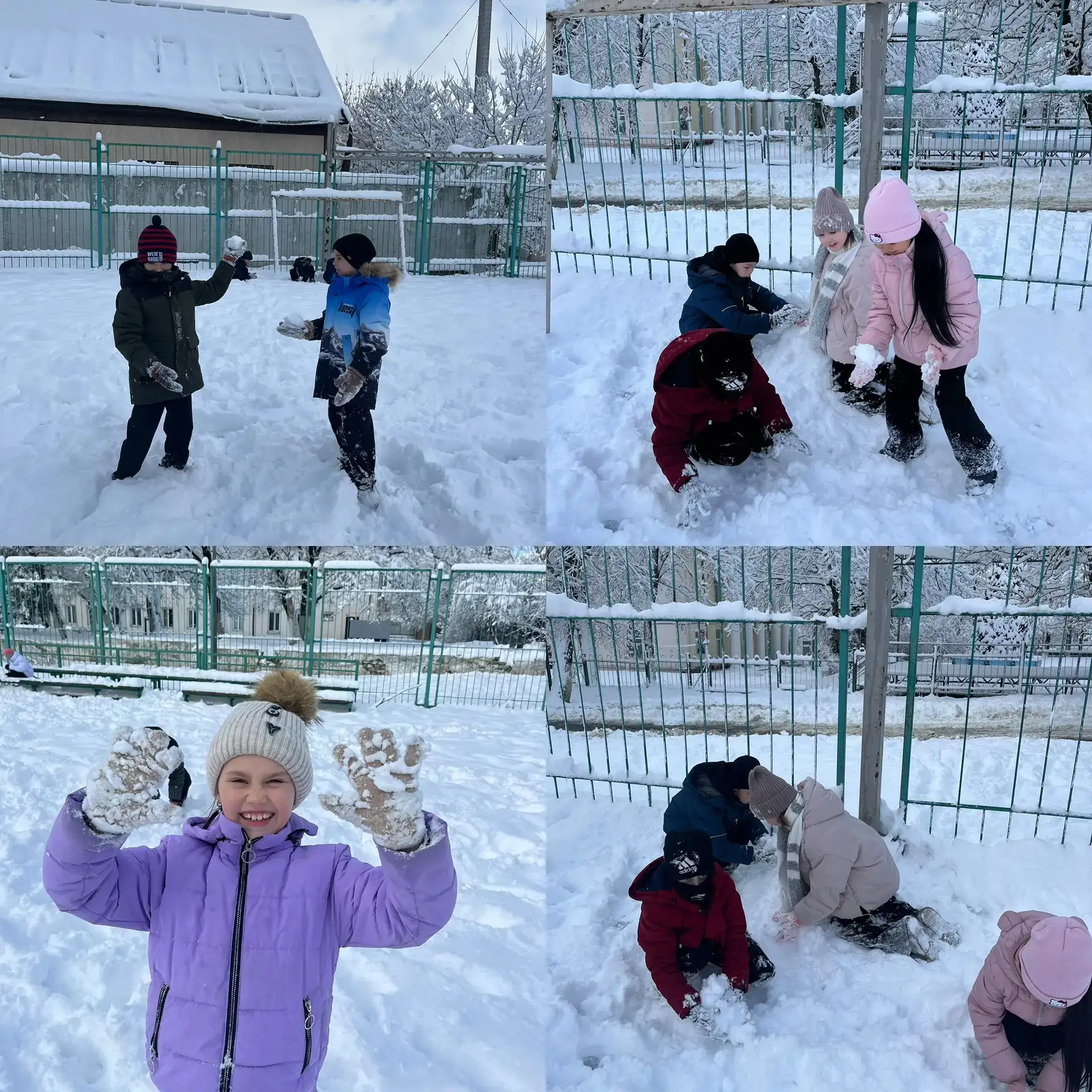 На переменках во дворе — настоящий снежный праздник:
