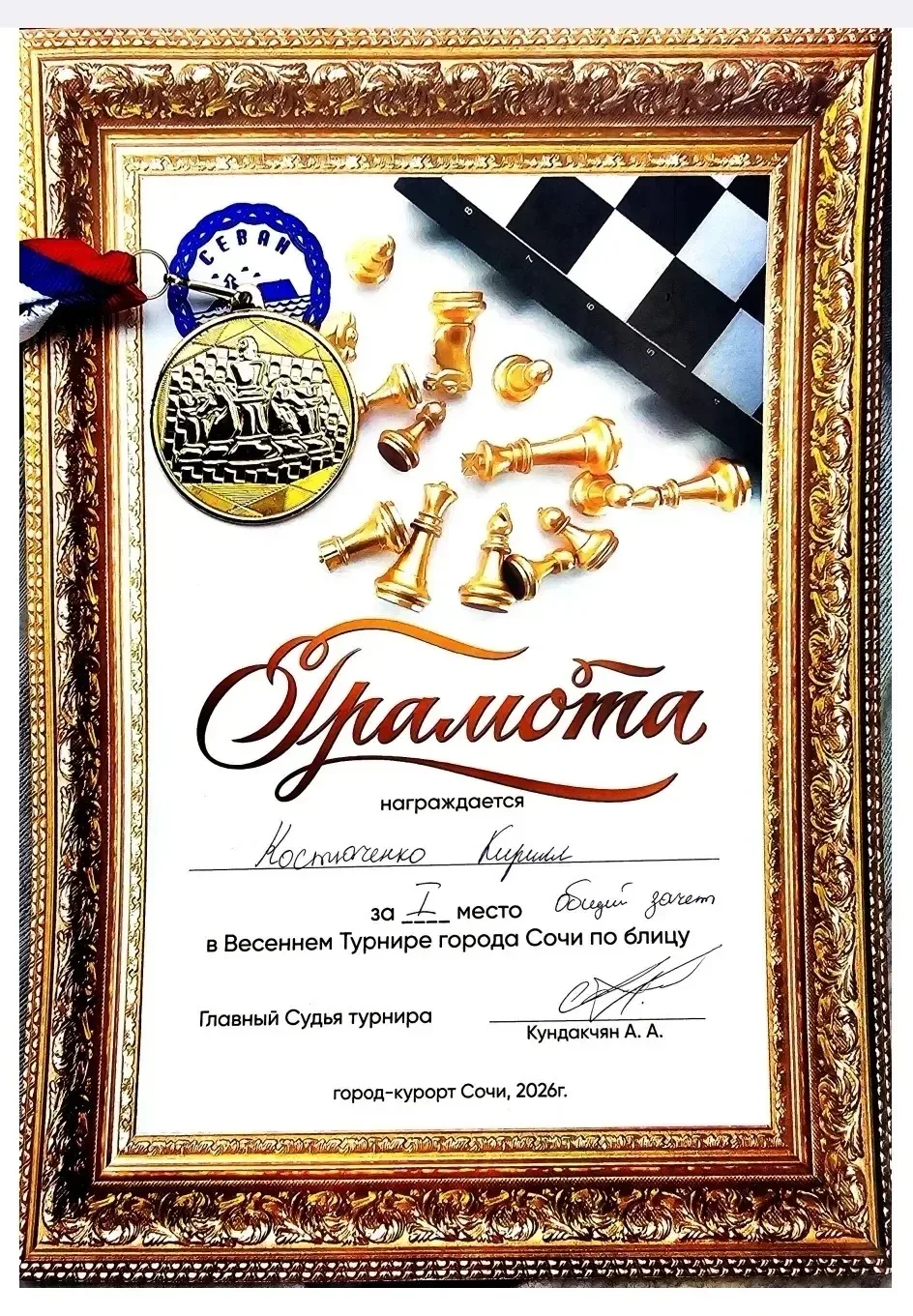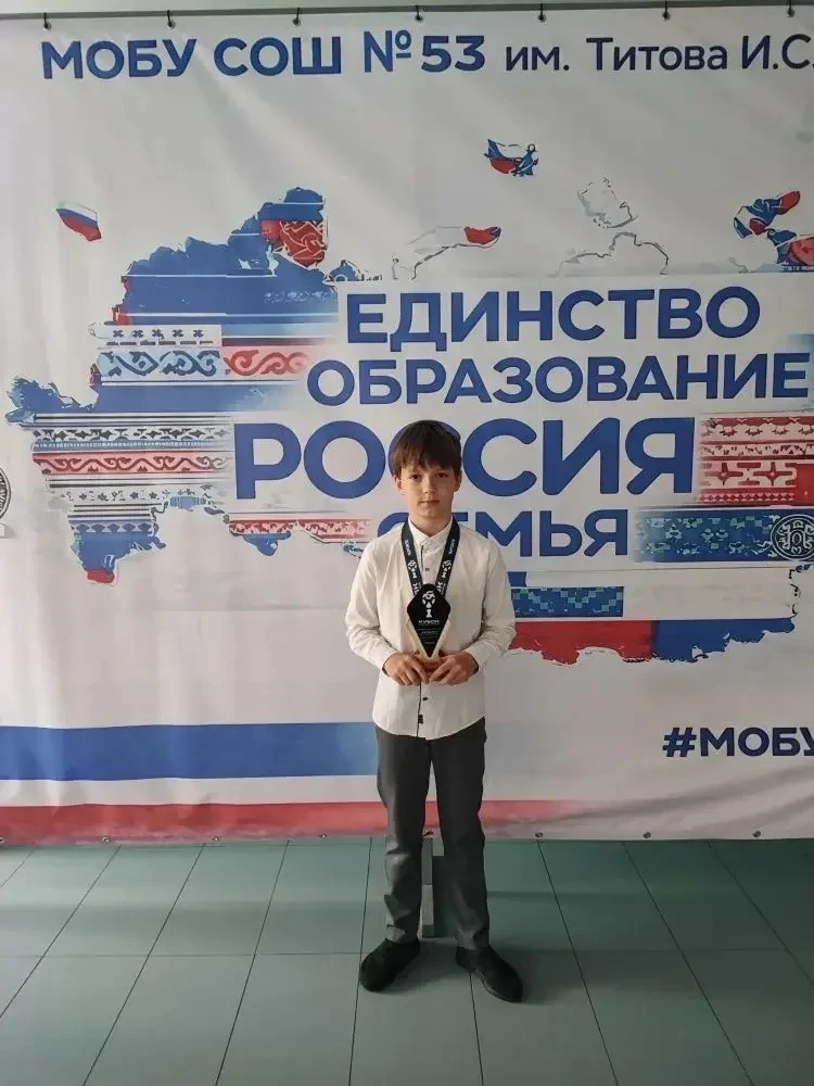 Поздравляем учеников 2г класса, Костюченко Кирилла, с первым местом🥇 в "общем зачёте" в турнире по шахматам♟