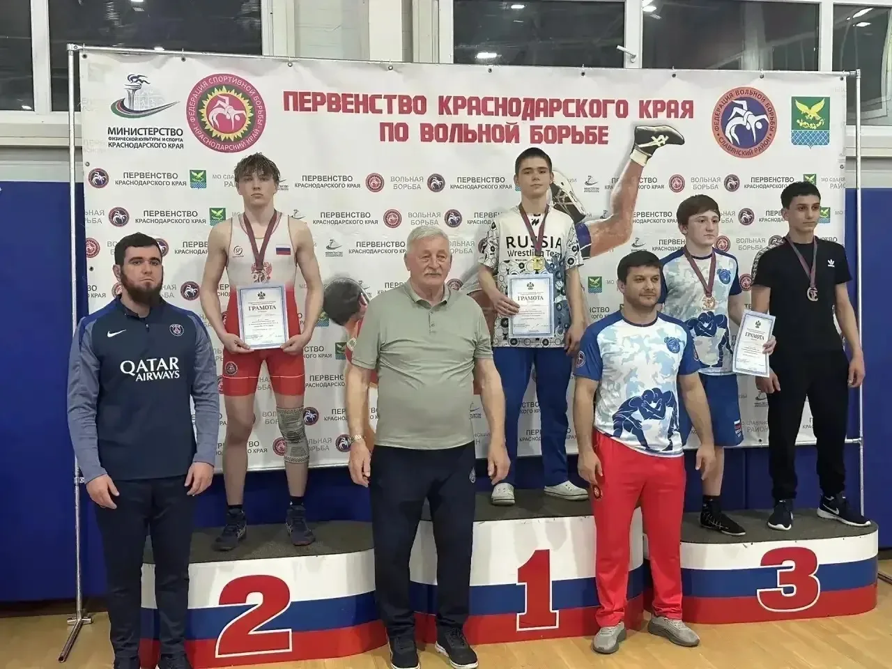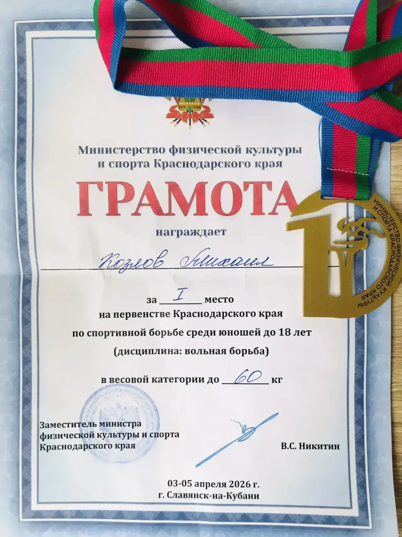 ✨Поздравляем Козлова Михаила (9Д класс) с 🥇 местом на Первенстве Краснодарского края по вольной борьбе среди юношей.