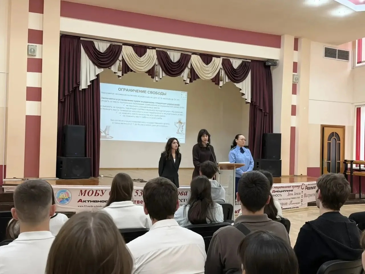 В нашей школе состоялась профилактическая лекция для учеников 9–11 классов на тему «Уголовная и административная ответственность». Спикером выступила старший преподаватель РУДН Сочинского института Елена Владимировна Леонтьева.