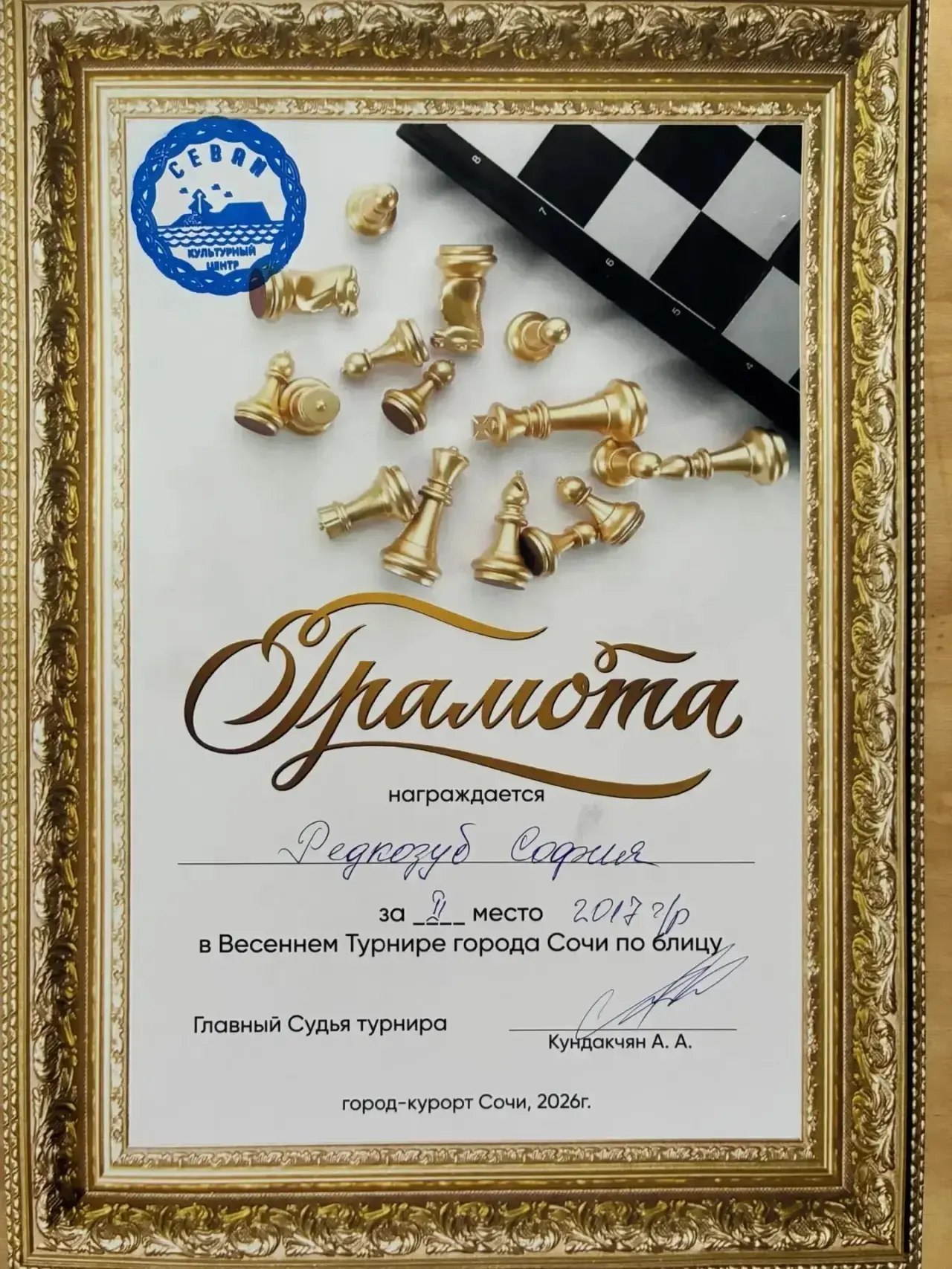 И Редкозуб Софью, со вторым местом🥈 в "общем зачёте" в турнире по шахматам♟