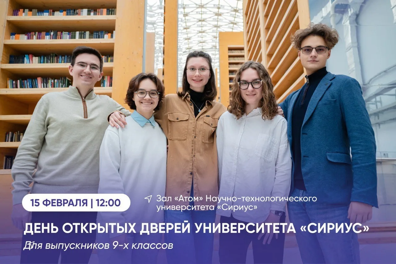 🔎 Научно-технологический университет «Сириус» приглашает девятиклассников и их родителей на день открытых дверей.