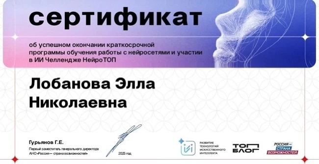 ✨Поздравляем Эллу Николаевну Лобанову с очередным достижением!