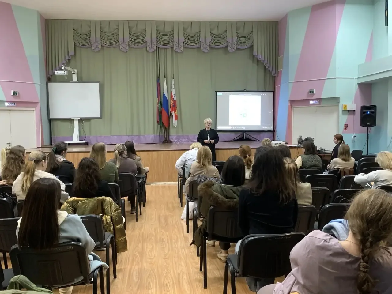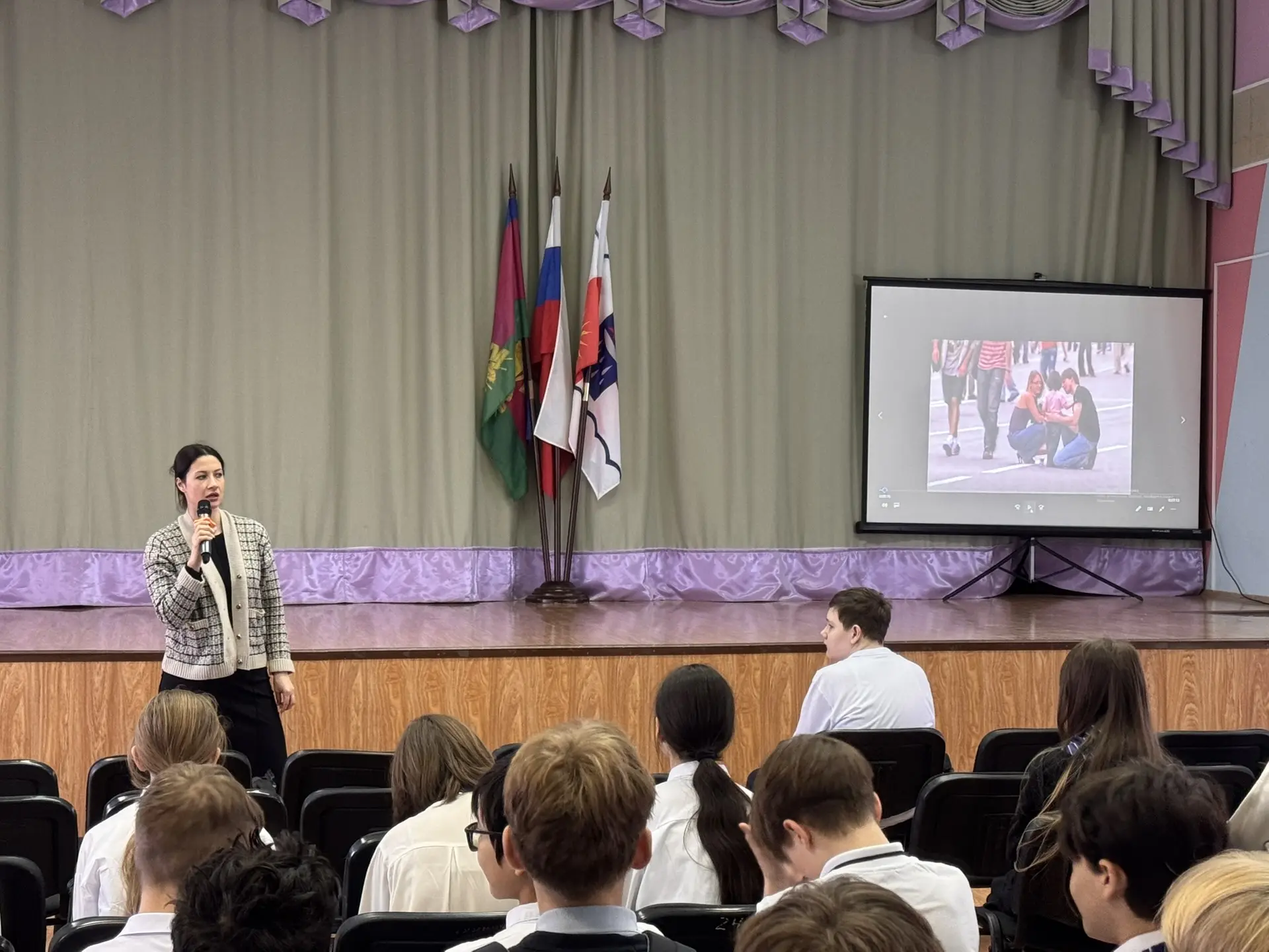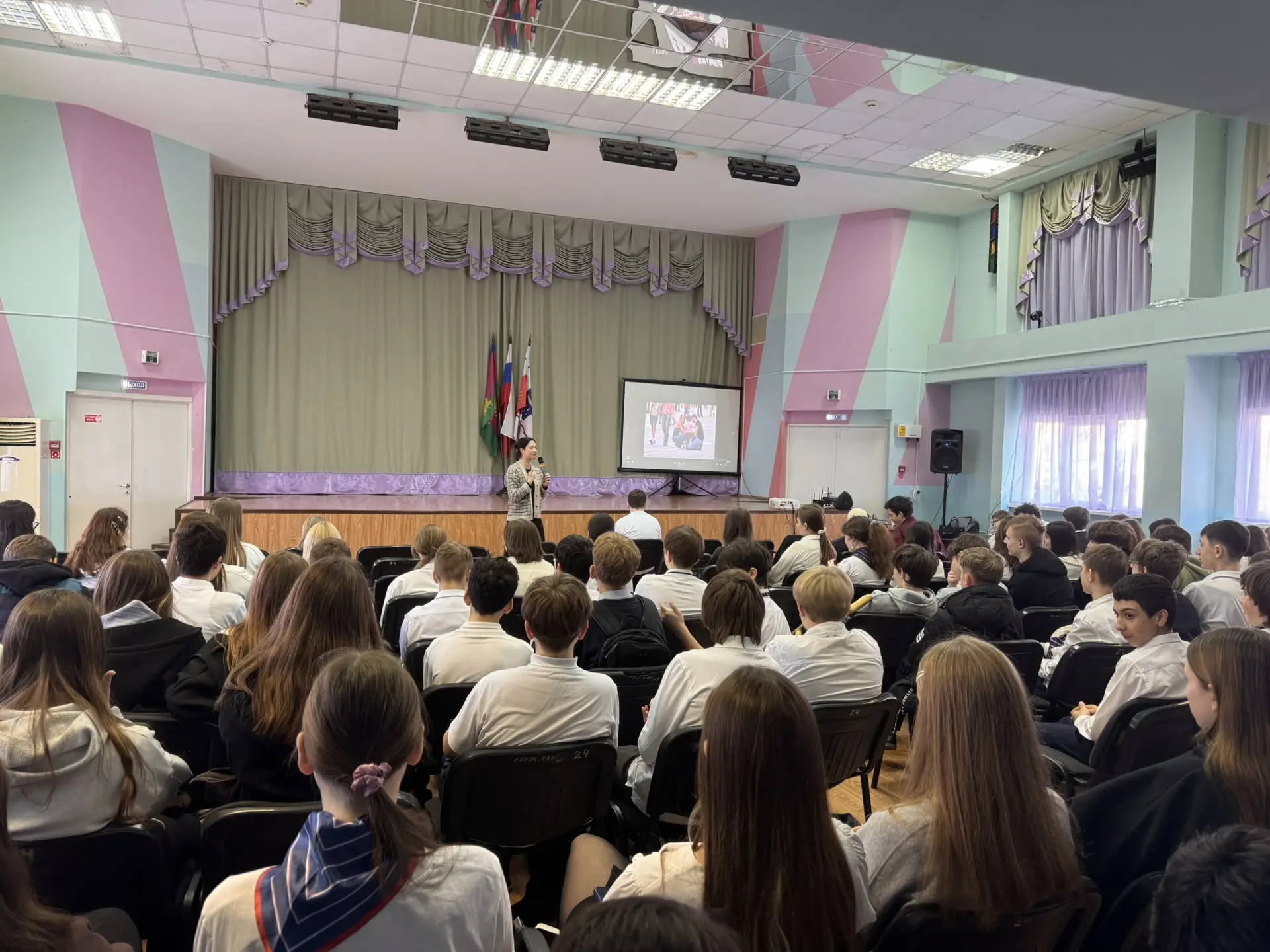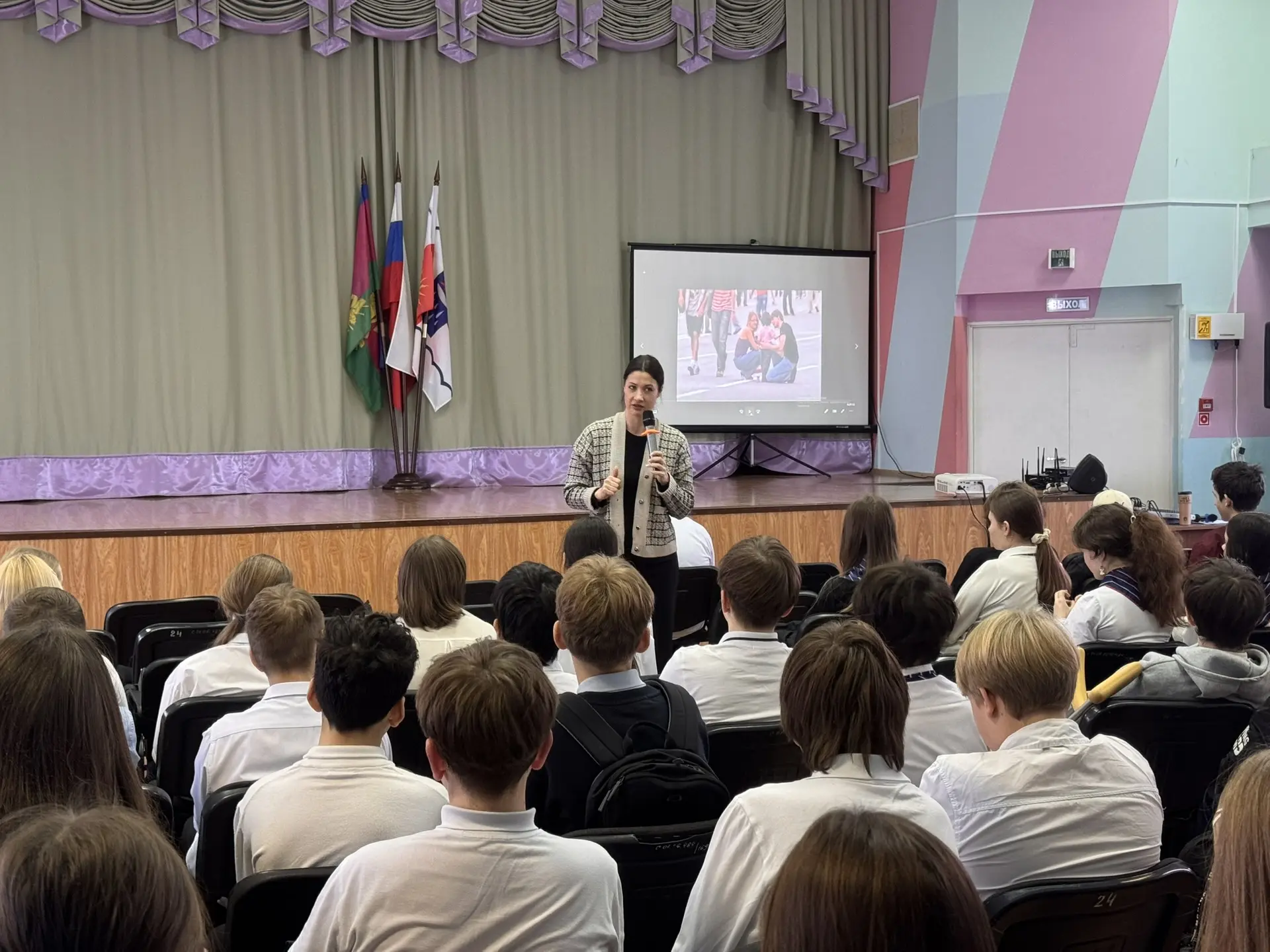С ребятами говорила Алёна Васильевна Столичная — человек, чей опыт вызывает огромное уважение. Она не просто лектор, а практик с многолетним стажем в сфере нравственного воспитания и профилактики зависимостей. Алёна Васильевна представляет общественные организации «Нечаянная радость» и «Трезвый Сочи», а также является членом Общественной палаты города.