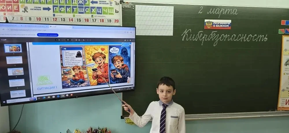 🇷🇺Сегодня состоялся очередной урок из цикла «Разговоры о важном». В преддверии весенних каникул с учащимися поговорили о правилах безопасного поведения в Сети и как защитить себя от кибермошенников.