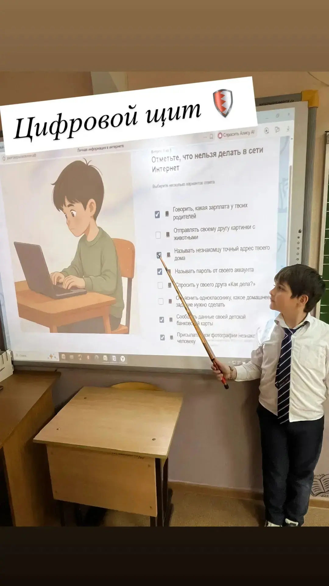 👩💻В ходе занятия школьникам предложили осмыслить, что такое безопасное поведение в Сети и почему интернет требует такой же осторожности, как и реальная жизнь.