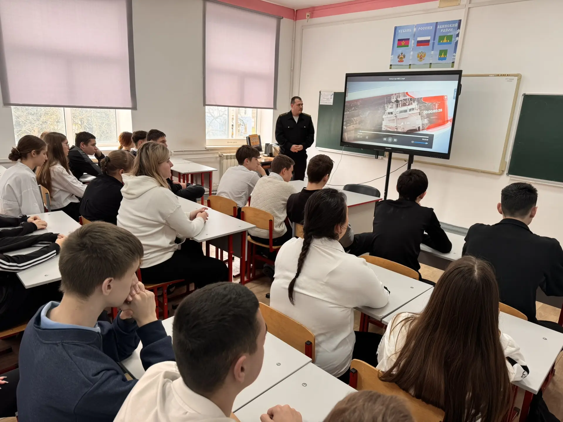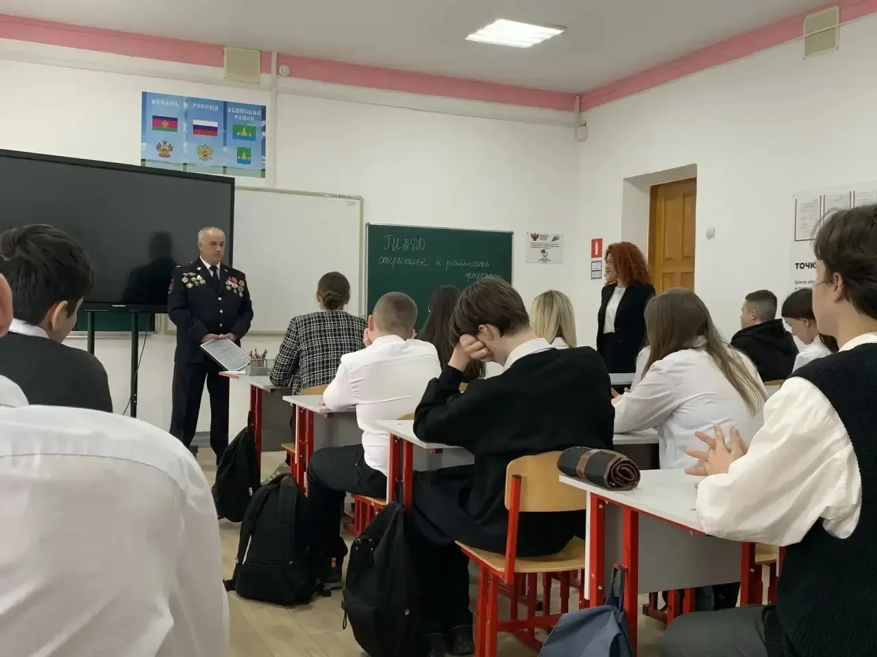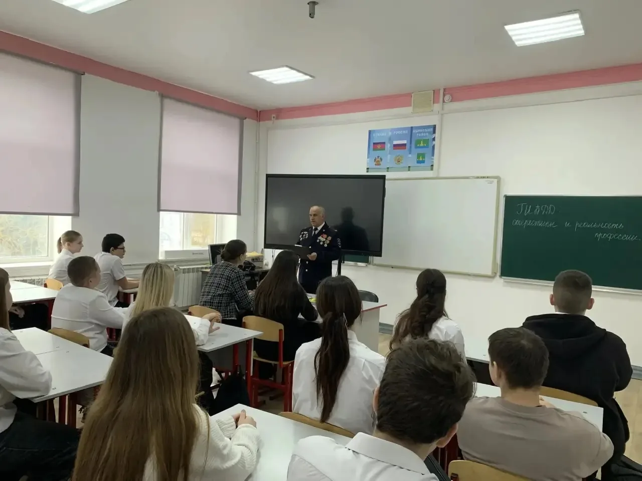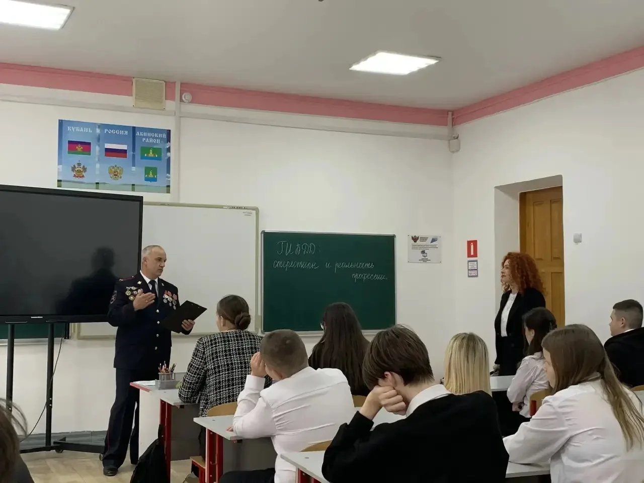 Сегодня, 5 марта 2026 года, для учащихся 8 «А» класса в рамках профориентационной работы состоялась встреча с инспектором ДПС ГИБДД ОМВД России по Абинскому району подполковником полиции Уваровым Андреем Евгеньевичем. Тема беседы — «ГИБДД: стереотипы и реальность профессии» — оказалась невероятно актуальной для подростков. Андрей Евгеньевич открыто поговорил со школьниками о распространенных мифах, окружающих работу инспектора, развеяв самый популярный из них: «Работа инспектора — это только стоять на посту и махать палкой». На конкретных примерах он показал, насколько многогранна и ответственна эта служба, требующая не только физической выносливости, но и глубоких знаний психологии, юриспруденции и устройства автомобиля. В ходе живого диалога ребята не просто слушали, но и сами активно включились в работу: они проанализировали различные дорожные ситуации и предложили свои способы профилактики нарушений ПДД. Кроме того, подполковник Уваров рассказал школьникам о том, как можно попасть в ряды профессионалов ГИБДД, какие требования предъявляются к кандидатам и где можно получить соответствующее образование. Возможно, для кого-то из восьмиклассников эта встреча станет первым шагом к выбору будущей профессии!