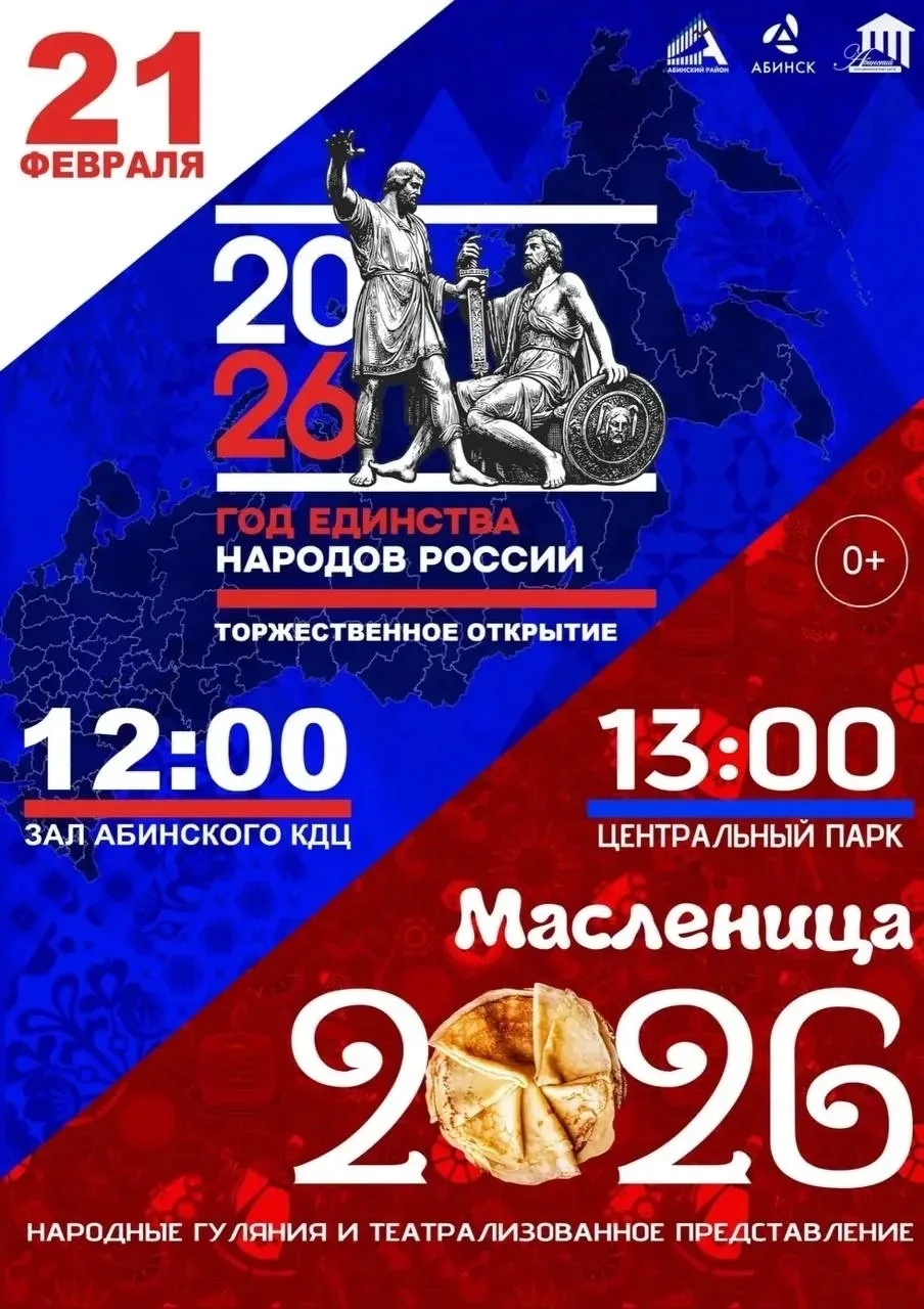 21 февраля приглашаем жителей и гостей Абинского района на торжественные и праздничные мероприятия, посвящённые Году единства народов России и народным традициям.