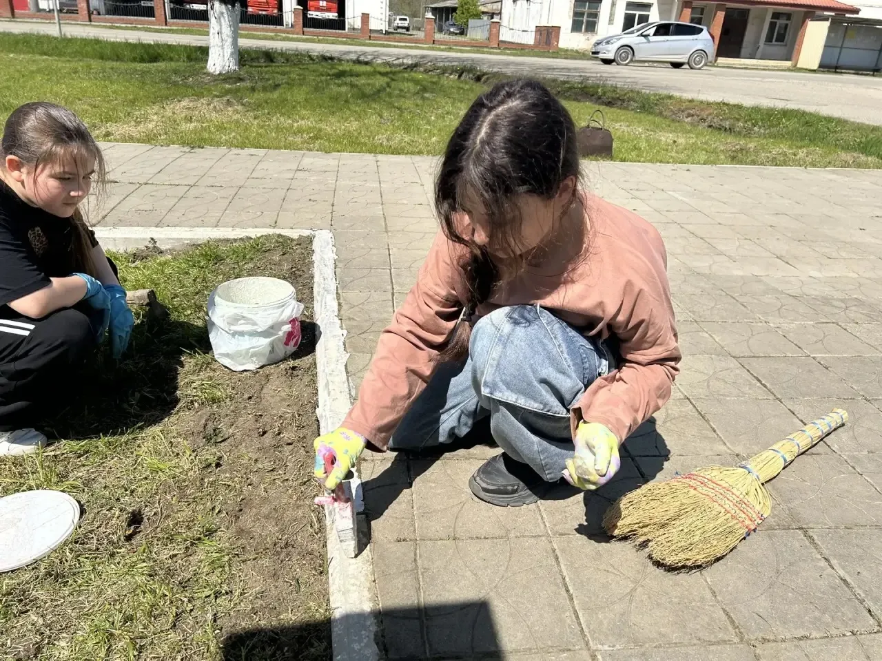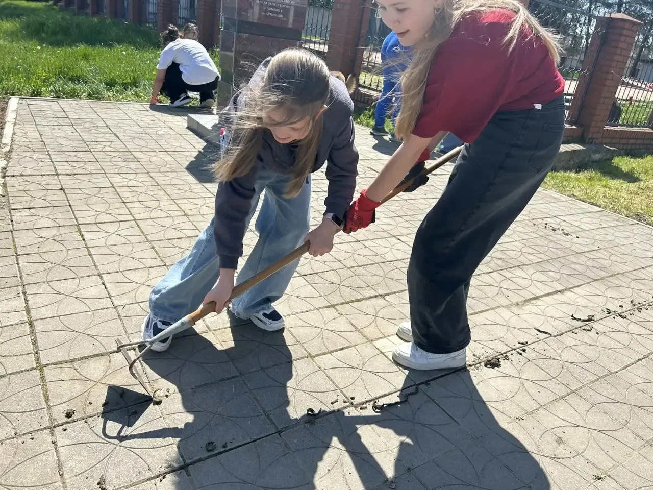 В рамках муниципальной акции «30 дней до Победы» пятиклассники вышли на трудовой десант. Ребята навели порядок у памятника Сергею Семеновичу Азарову : убрали траву, подмели плитку, очистили постамент, побелили бордюр.