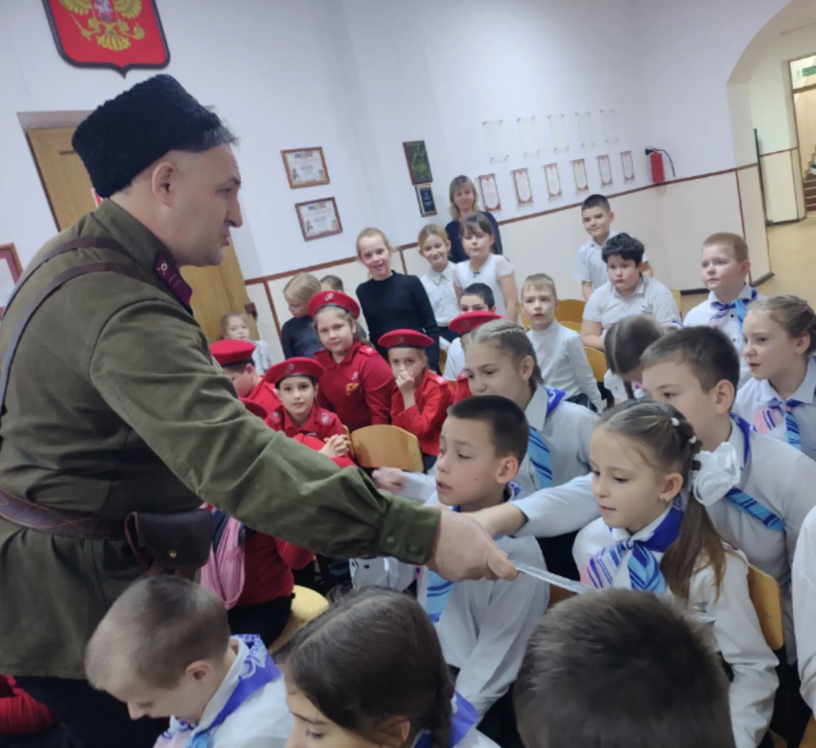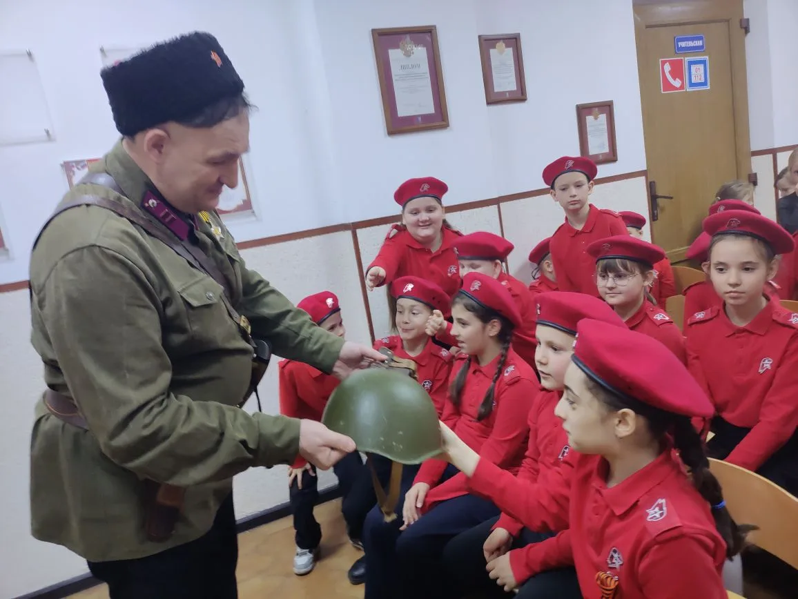 💥В преддверии Дня защитника Отечества для учеников начальных классов состоялся особый урок мужества, посвящённый освобождению станицы Ахтырской от немецко-фашистских захватчиков. Организатором мероприятия выступил Геннадий Иванович Гринченко – известный общественный деятель, руководитель Русского географического общества и наставник местного казачества.