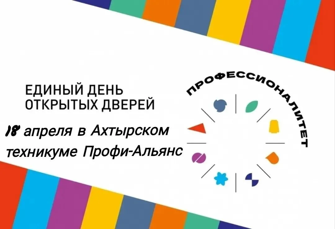 Приглашаем школьников 🎓 и их родителей 👪 на Единый день открытых дверей, который пройдёт в Ахтырском техникуме «Профи-Альянс» 🏫 в рамках федерального проекта «Профессионалитет» ⚙️.