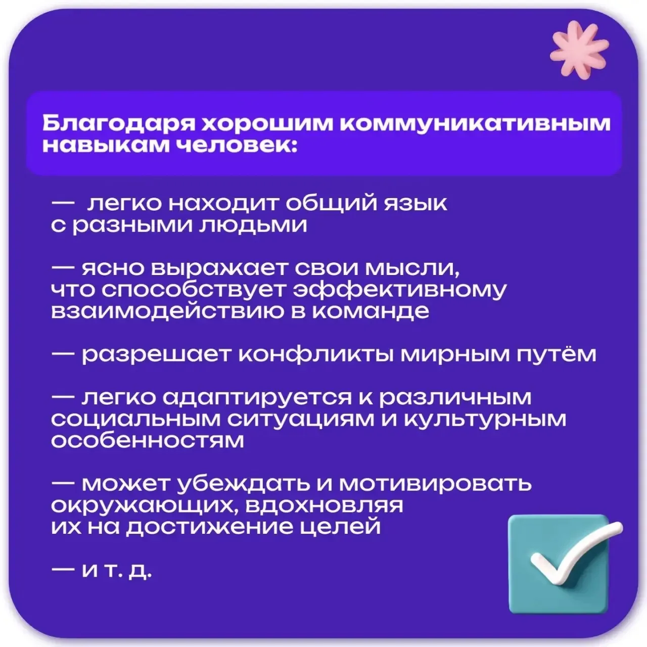 Умение общаться важно для всех. Оно помогает обмениваться информацией, ясно выражать мысли и чувствовать себя уверенно 👍