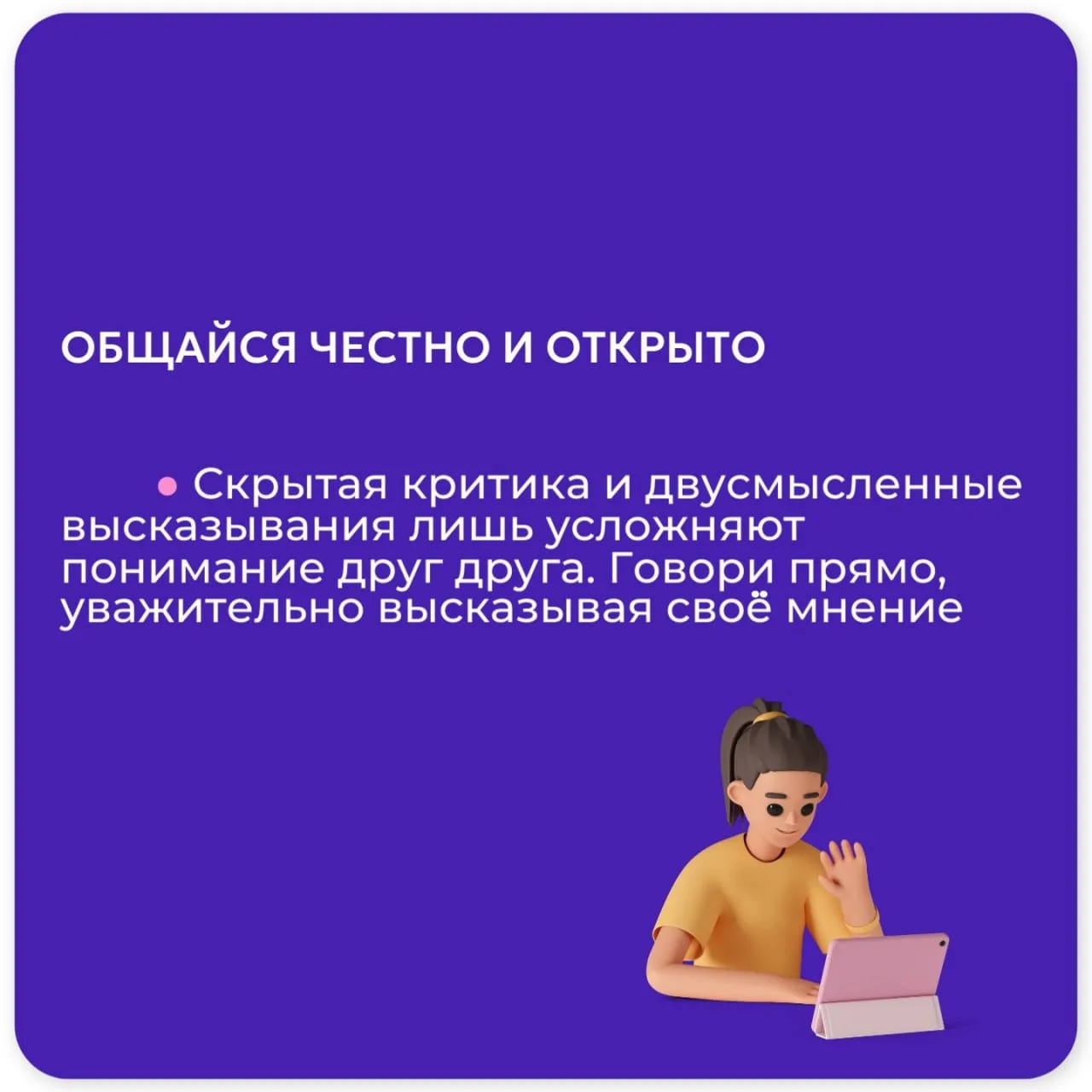 🗣 Говорите о своих чувствах и о самом поступке, а не о личности, это только укрепит ваши взаимоотношения ❤️