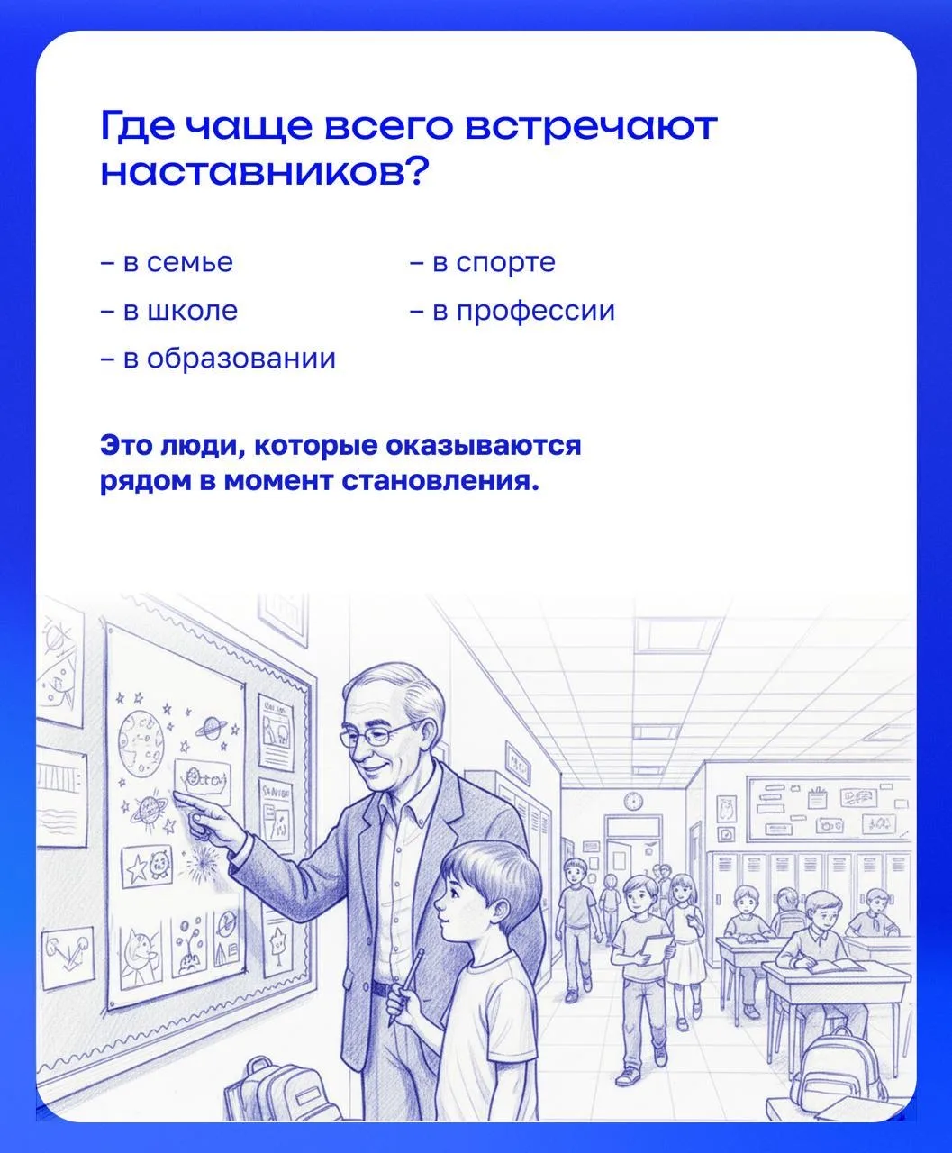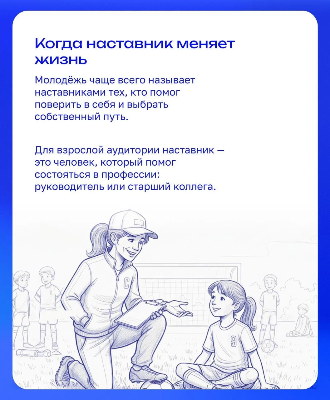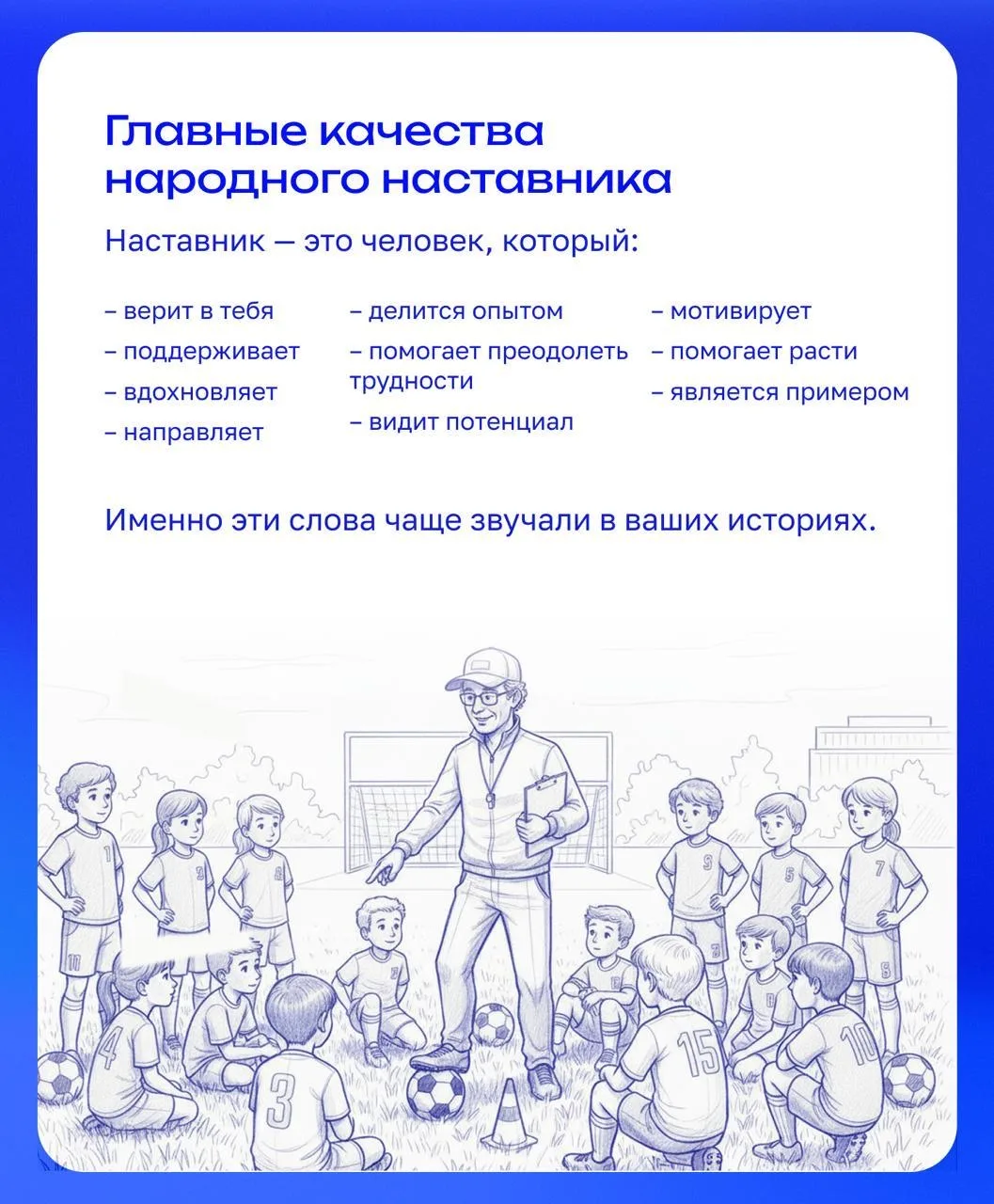 Эти истории увидели свыше 18 млн человек по всей стране. На основе этих публикаций мы составили собирательный образ наставника России в 2026 году. И самый главный вывод: наставник — это человек, который верит в вас с самого начала вашего пути.