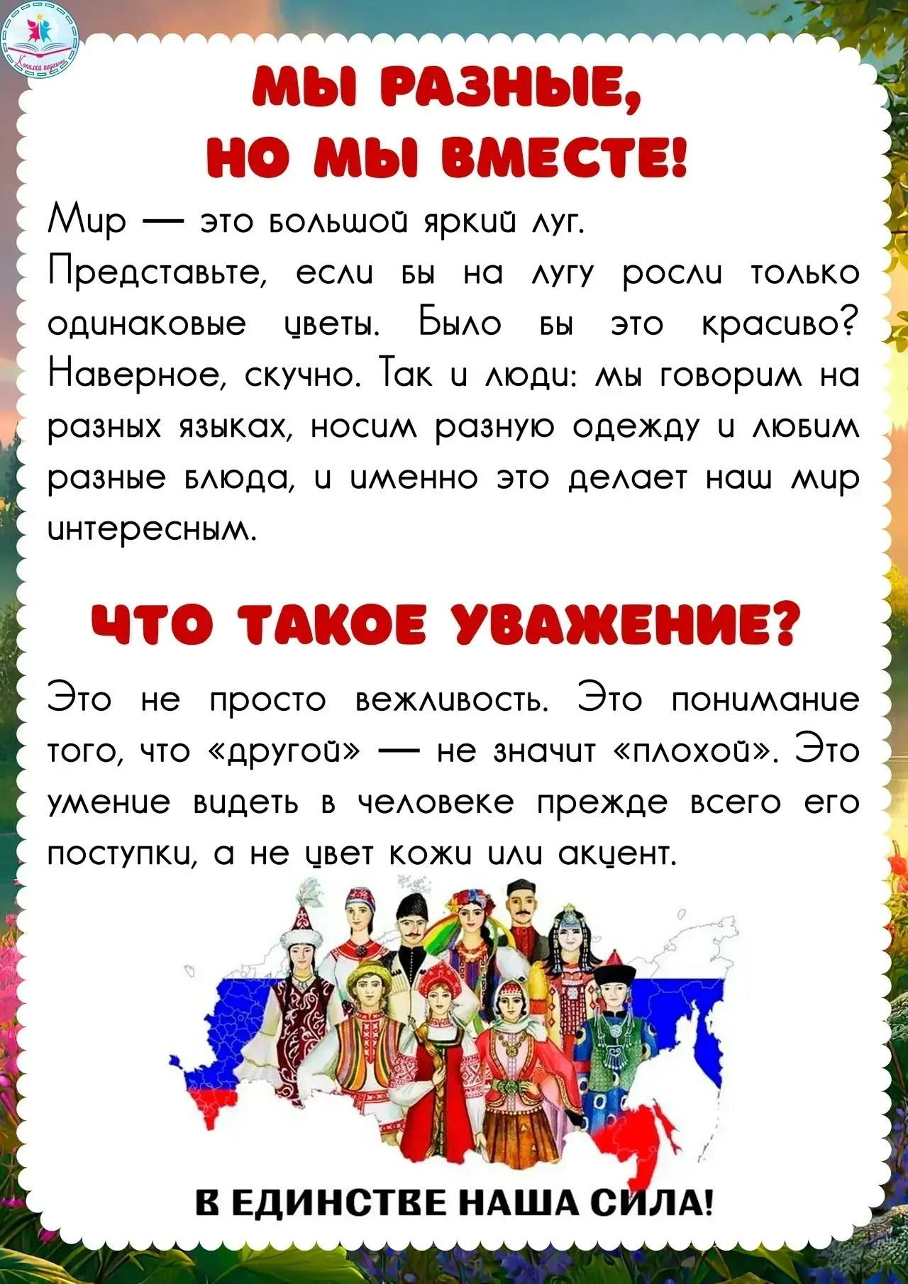 единства народов России. 🇷🇺Этот год напоминает о том, что наша страна сильна благодаря дружбе, взаимному уважению и сотрудничеству людей разных национальностей.