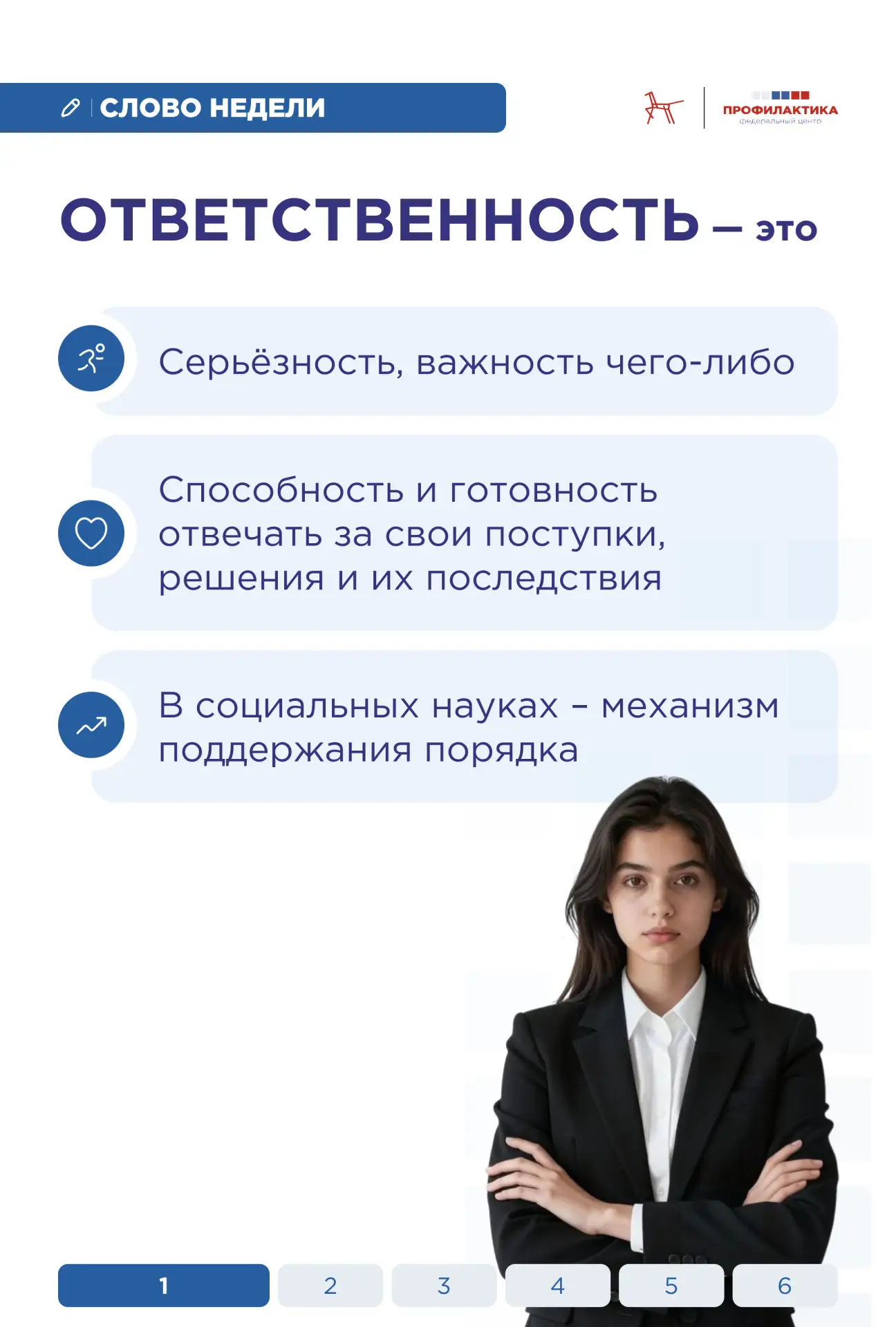 Ответственность – это способность и готовность человека отвечать за свои поступки, решения и их последствия. Это качество отражает зрелость личности и способность взаимодействовать с обществом.