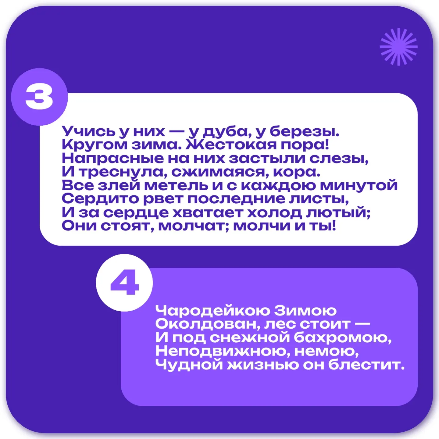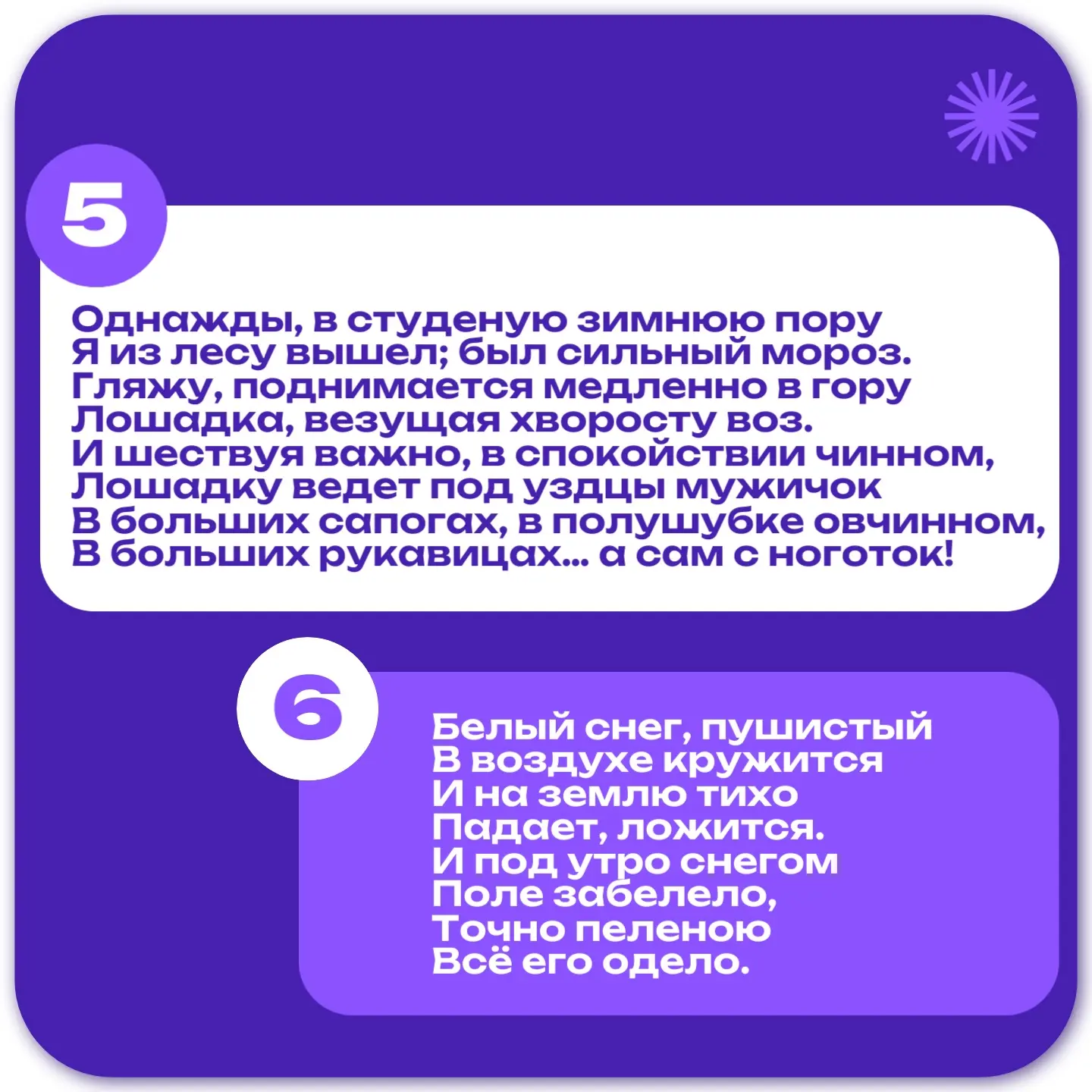 Друзья, давайте проверим, насколько хорошо вы знаете стихотворения школьной программы! Перед вами отрывки из известных произведений, нужно вспомнить, кто из поэтов написал эти строки ✏️