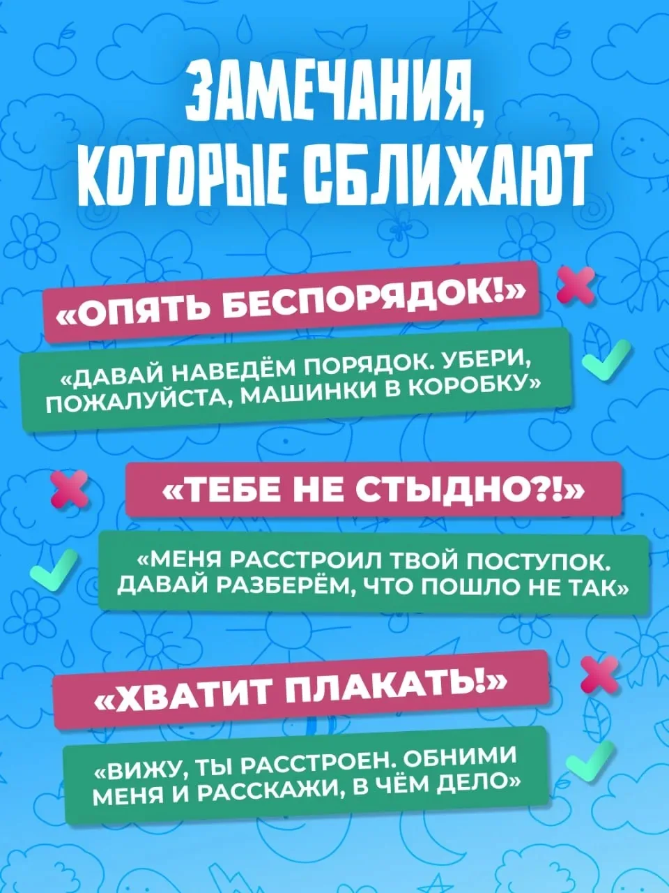 ❗️Часто наши фразы вызывают у детей только обиду и протест. Меняя формулировки, можно сохранить связь и научить чему-то новому, а не просто отчитывать.
