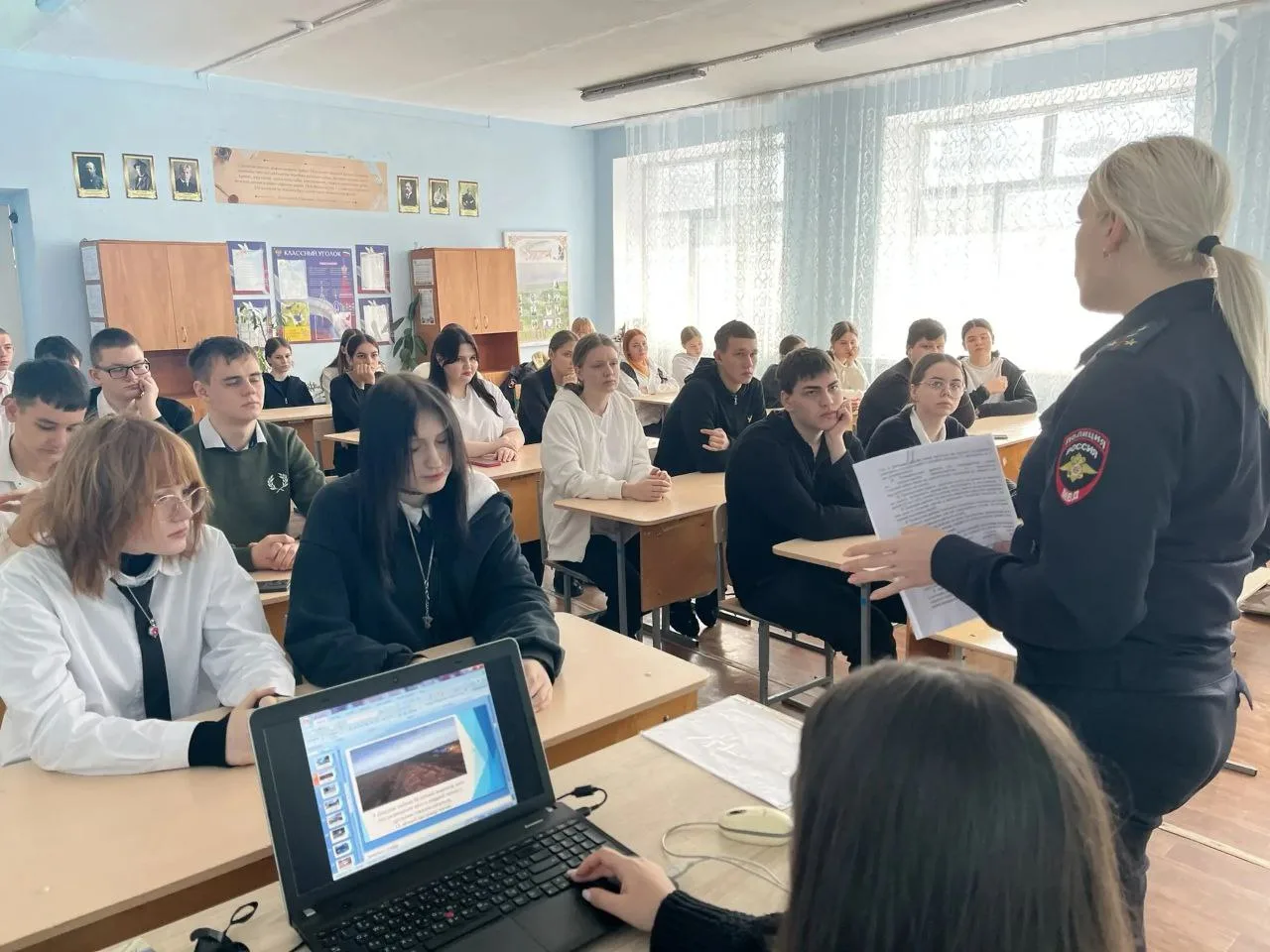 Специалист отдела по делам молодежи рассказала ребятам о вредных привычках и их последствиях, как не стать жертвой мошенничества, призвала старшеклассников вести активный образ жизни, интересоваться волонтерскими движениями, принимать участие в проводимых ими мероприятиях.