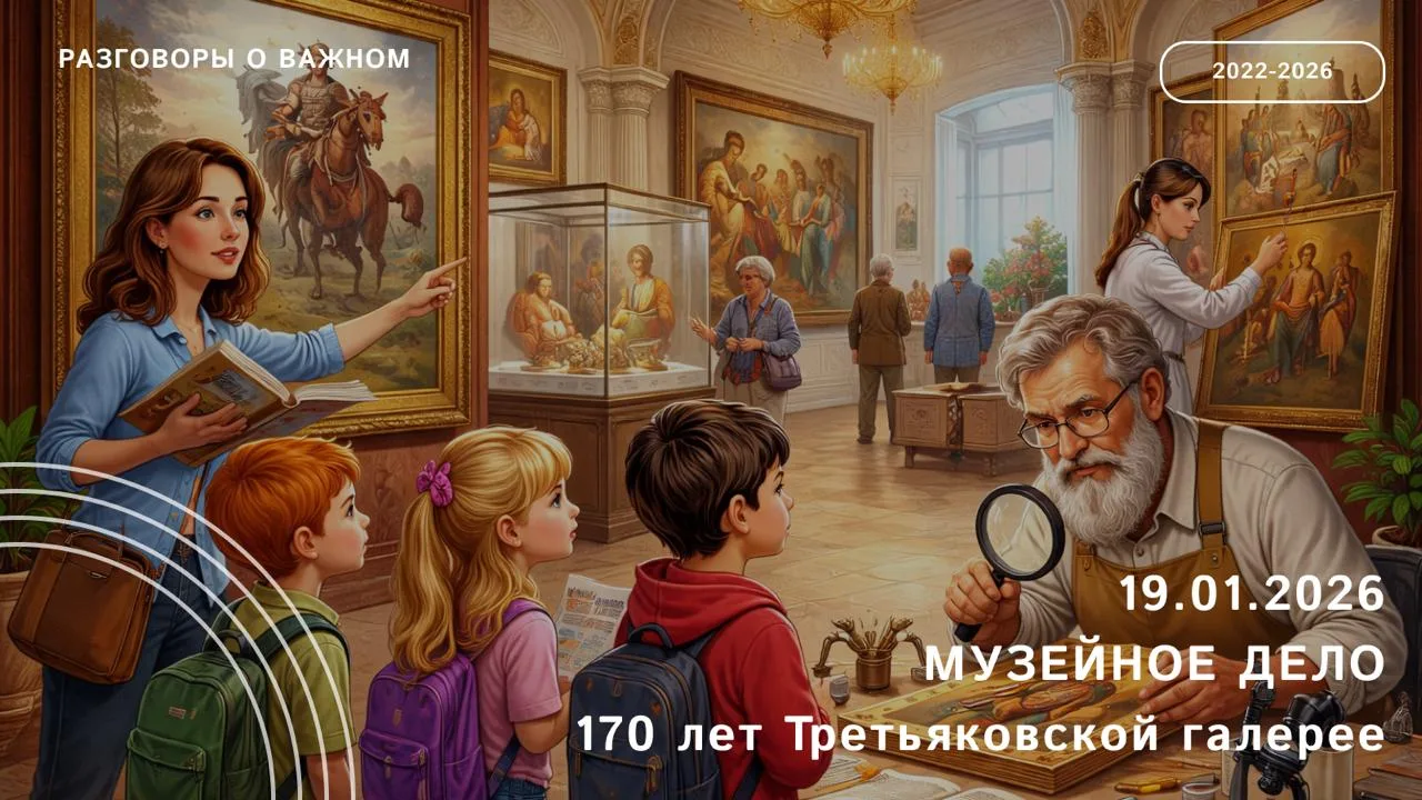 Уважаемые коллеги! 19 января занятие «Разговоры о важном» будет посвящено теме «Музейное дело. 170 лет Третьяковской галерее».