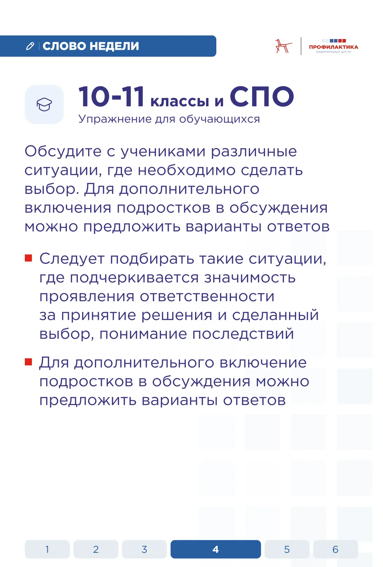 Помочь обучающимся разобраться в понятии ответственности помогут упражнения от психолога Светланы Колесник. Они учитывают возрастные особенности, поэтому материал усваивается легче и интереснее. Описание ситуаций для занятия с обучающимися 10–11 классов и СПО смотрите в статье.