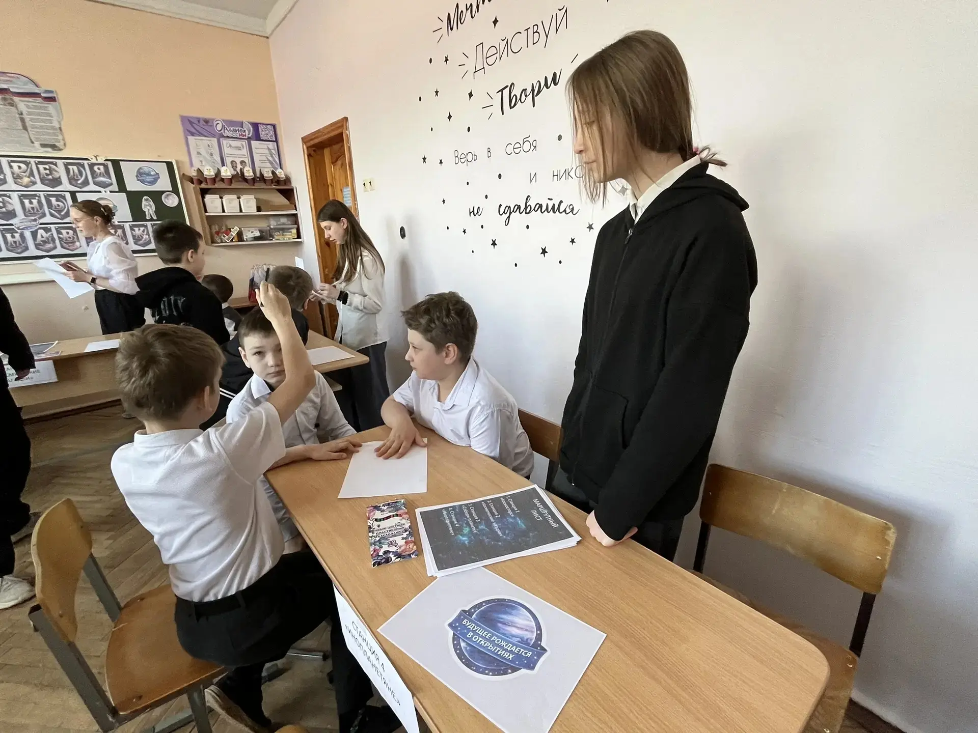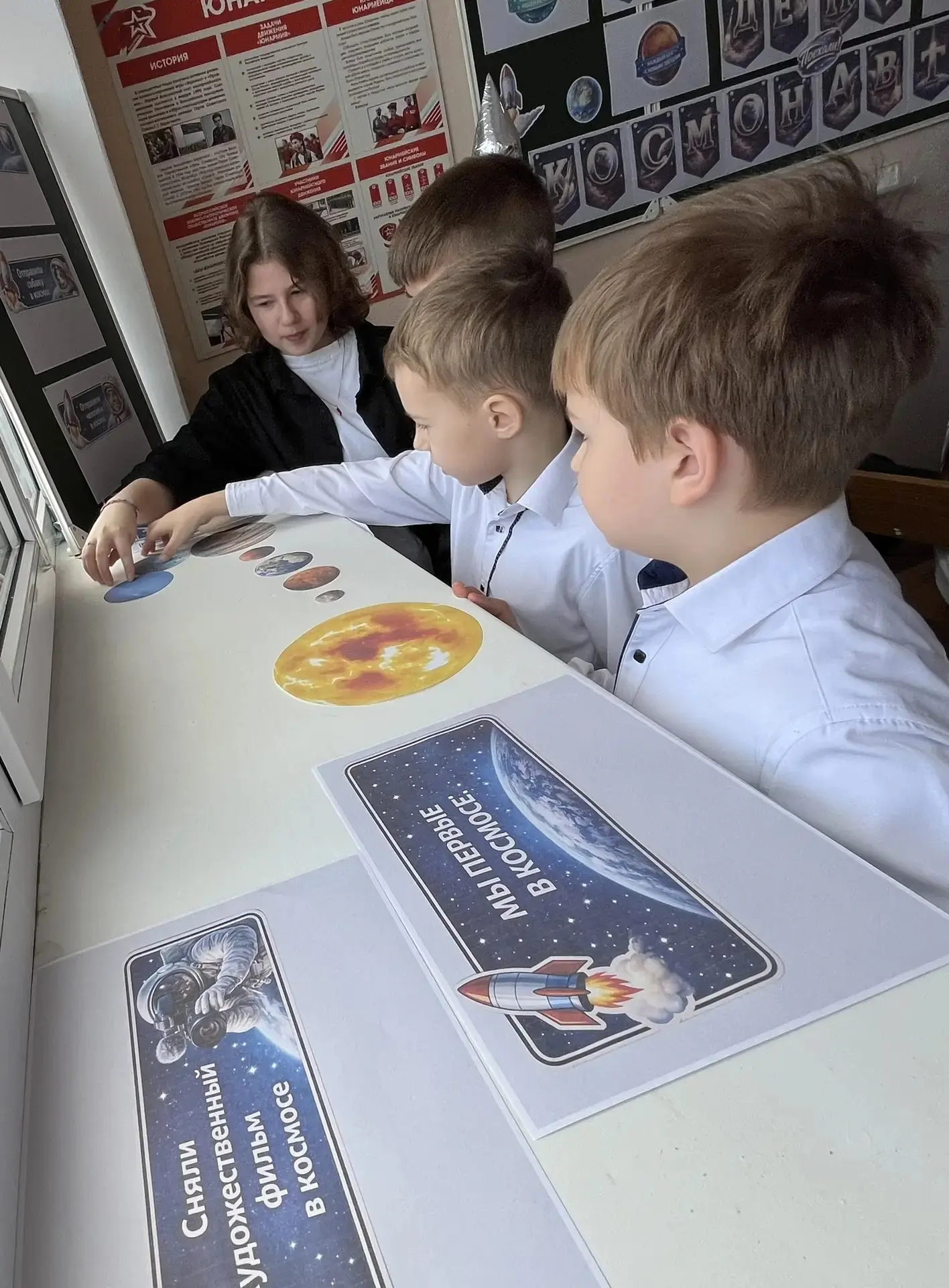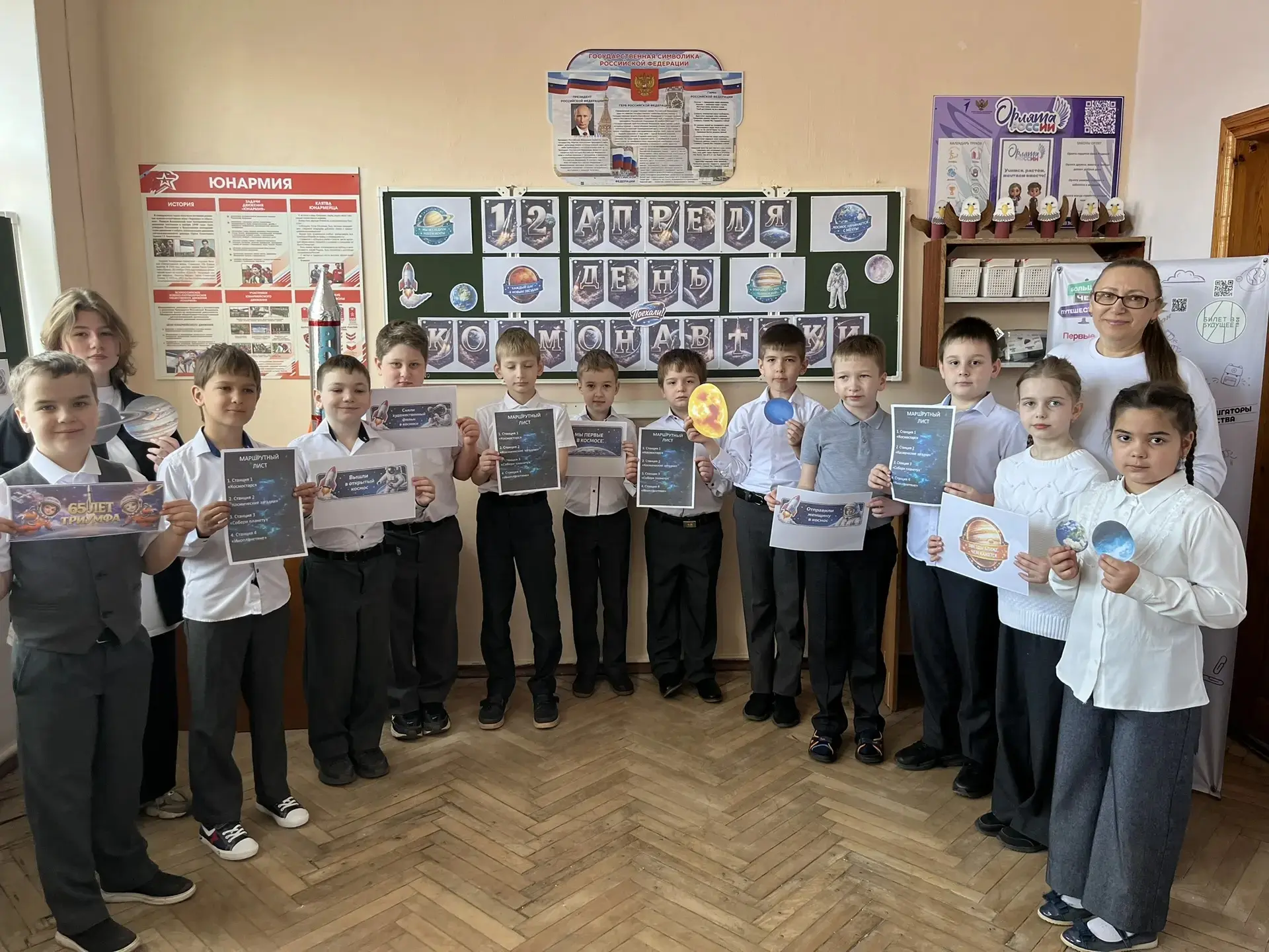 🚀Ко Дня космонавтики советник директора по воспитанию провела лекцию «Космический путь России: исследуя бесконечность», организованную Российским обществом «Знание», и космический диктант к 65-летию первого полета человека в космос.🌠✨
