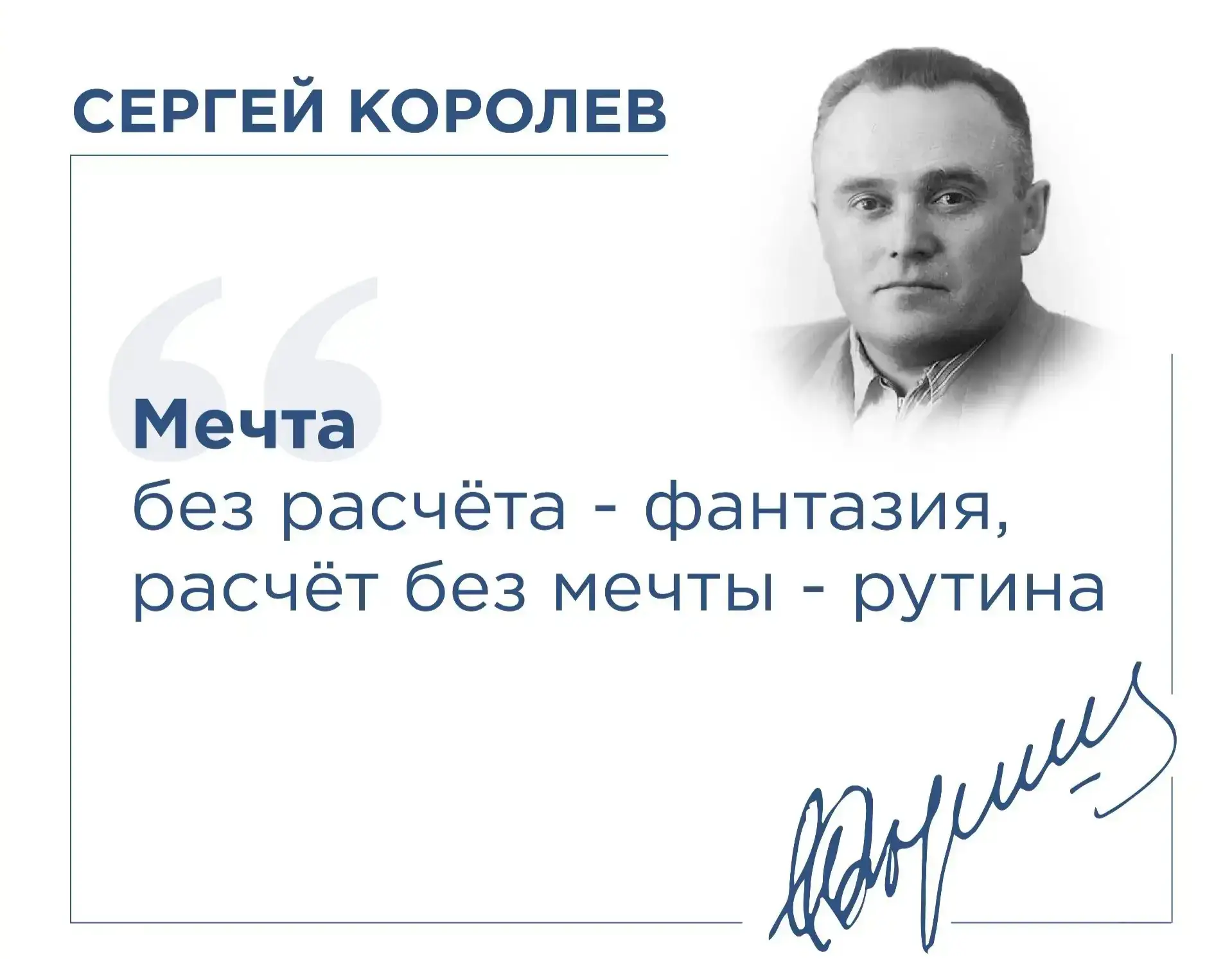В День космонавтики у нас цитата недели от выдающегося советского ученого и конструктора ракетно-космических систем Сергея Павловича Королева.