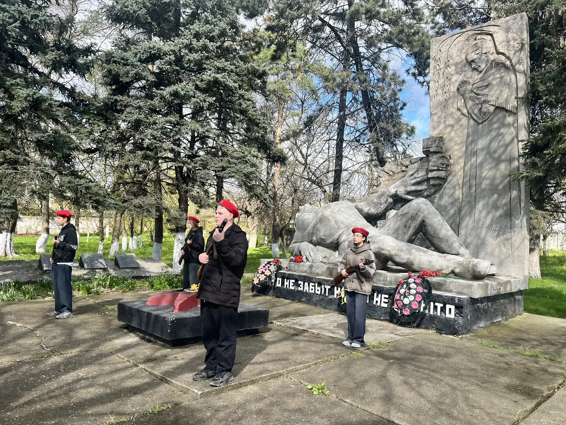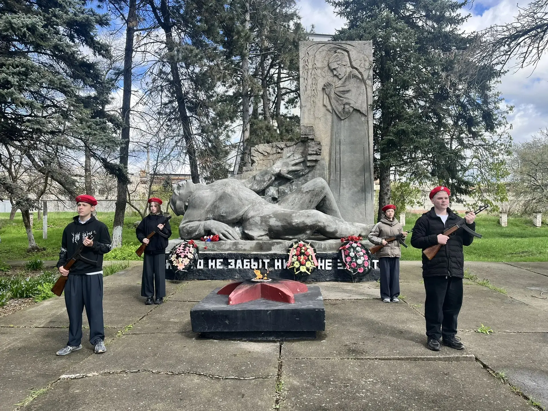 Сегодня, 10 апреля, на территории Гирейского городского поселения у Обелиска в честь рабочих и служащих, погибших в годы Великой Отечественной войны, Юнармейцы 7Б класса нашей школы приняли участие в несении Почётной Вахты Памяти на Посту №1. 🇷🇺
