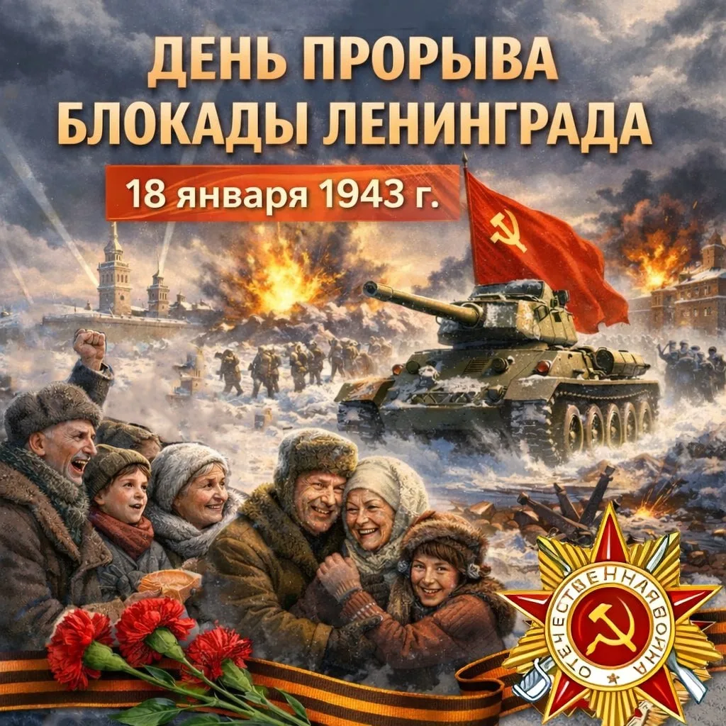 Сегодня мы вспоминаем одну из важнейших дат в истории нашей страны — день, ставший символом мужества, стойкости и несгибаемой воли. 18 января 1943 года в ходе операции «Искра» советским войскам удалось прорвать блокадное кольцо вокруг Ленинграда и восстановить сухопутную связь города с Большой землёй. Это был решающий шаг к спасению миллионов жизней и будущему полному освобождению города.
