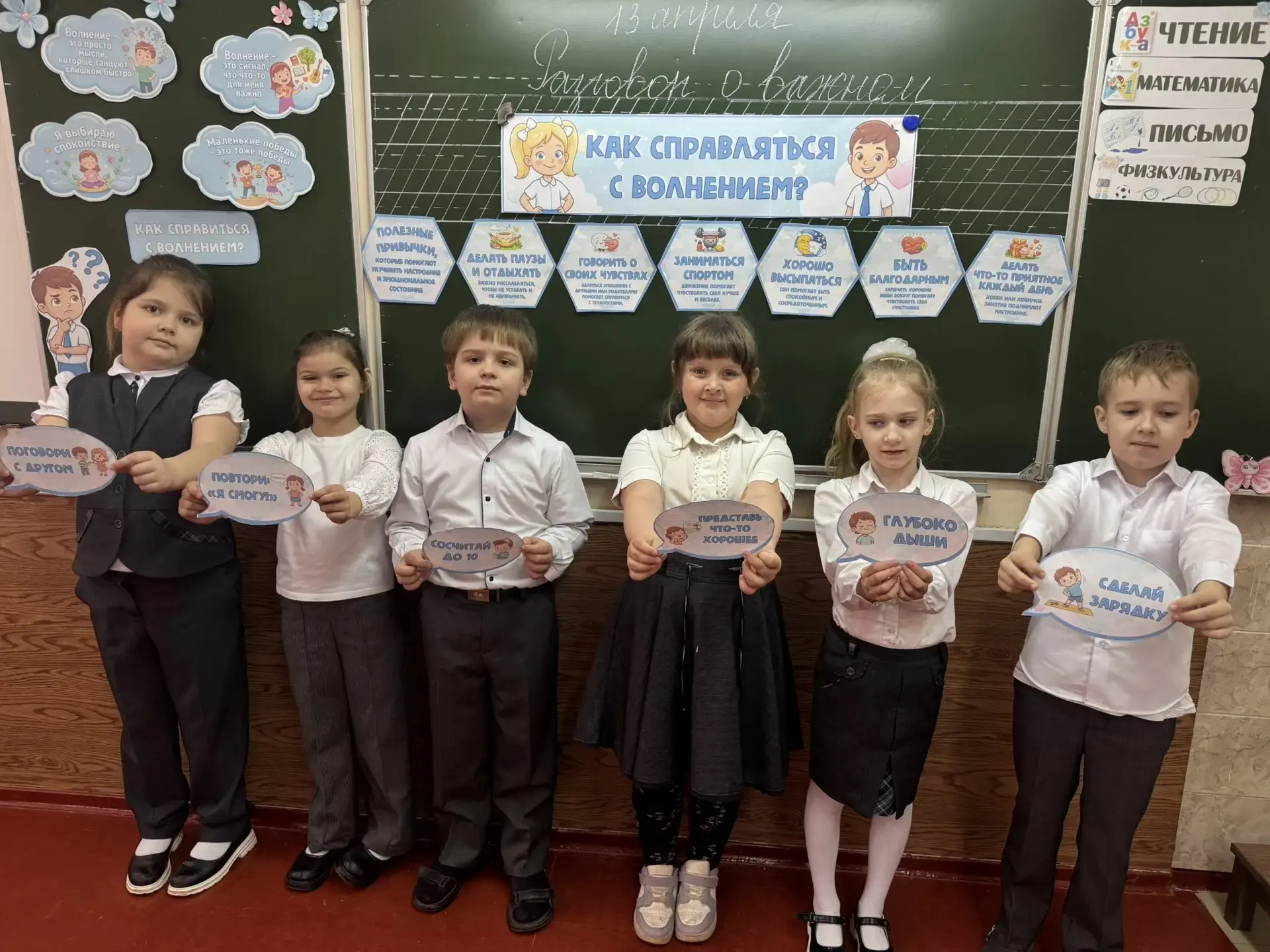Сегодня,13 апреля, на "Разговорах о важном" обсудили очень интересную тему "Как справляться с волнением?" Разбирали, что делать в стрессовых ситуациях и какие практические техники помогут успокоиться.
