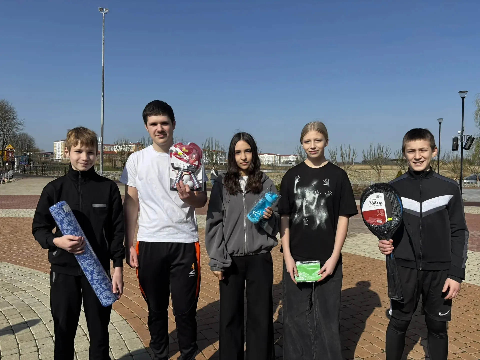 🔰Зарядку провёл Чемпион Краснодарского края по гребле на байдарках и каноэ Адодин Денис Витальевич. После зарядки, ребята участвовали в забеге. На финише их ждала лотерея в которой они смогли выиграть множество полезных подарков.