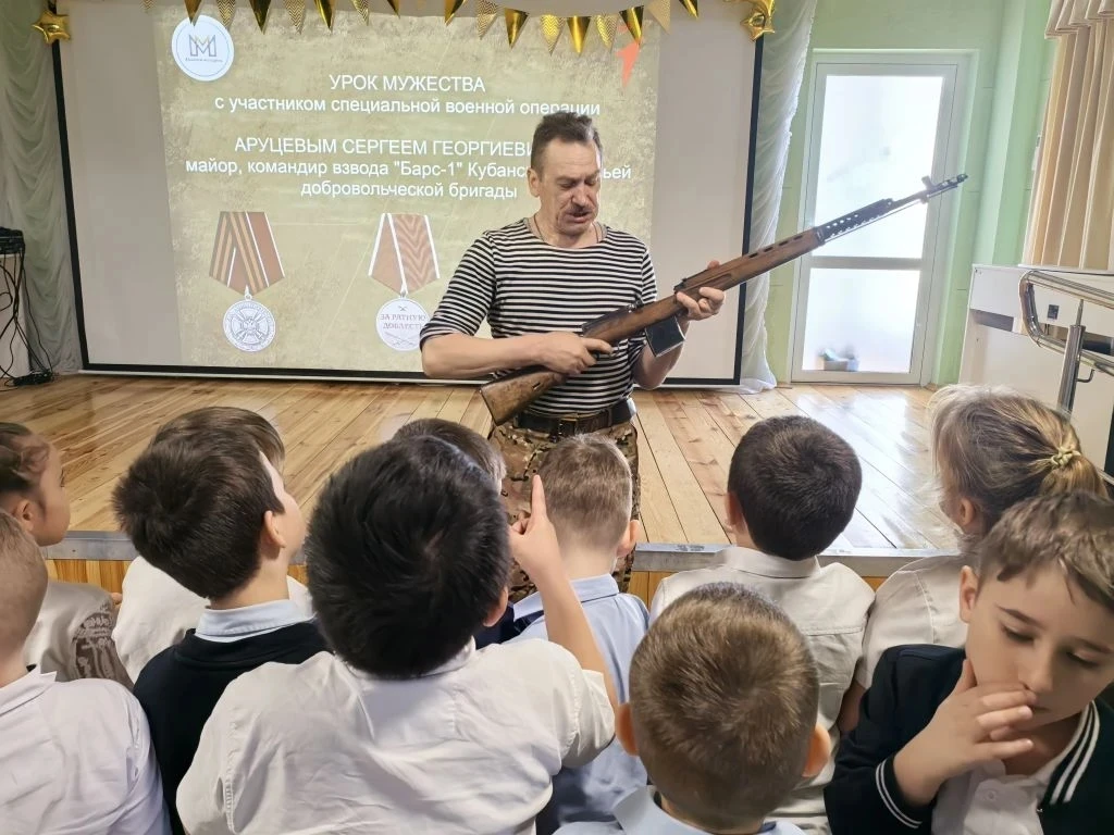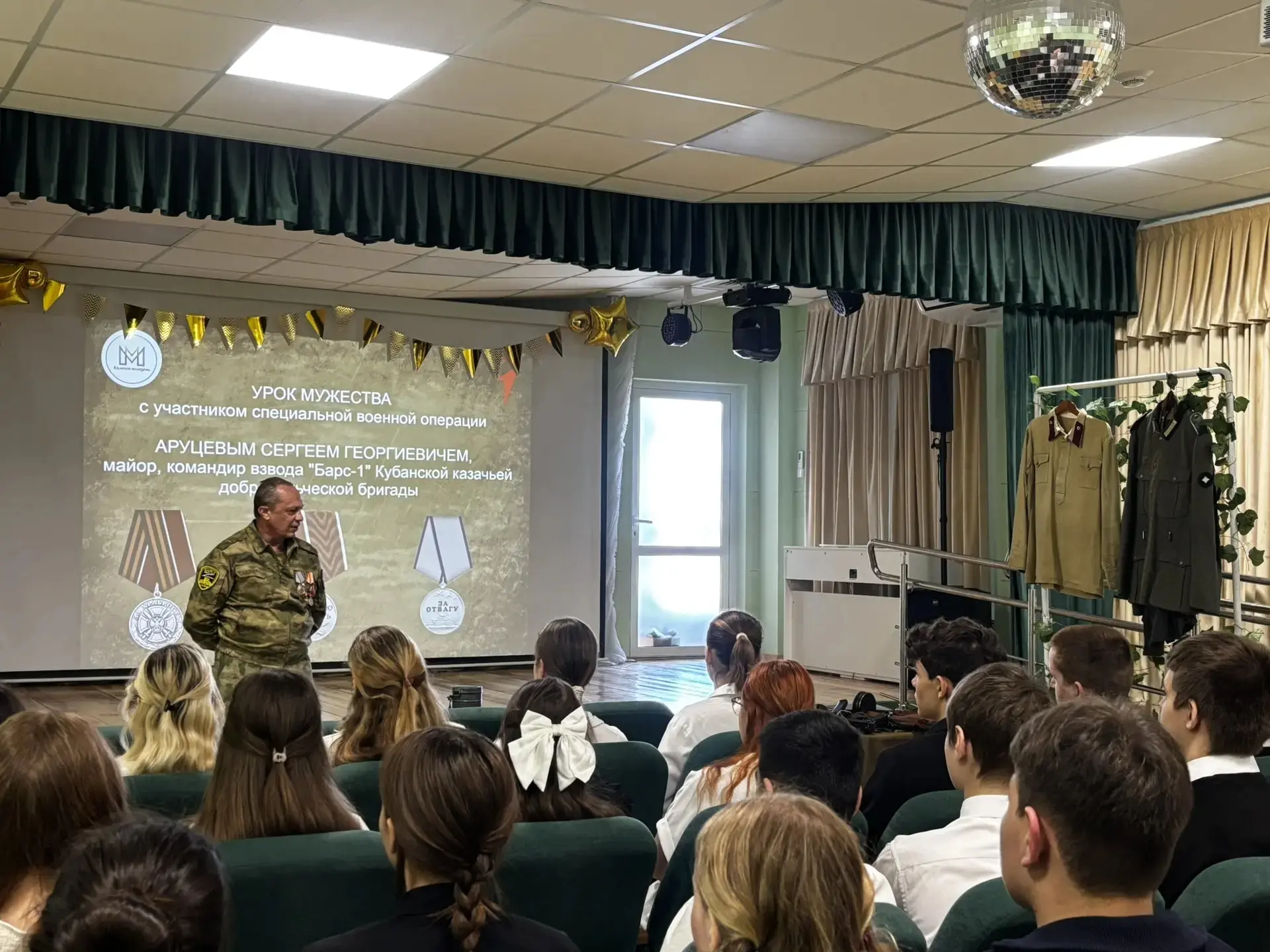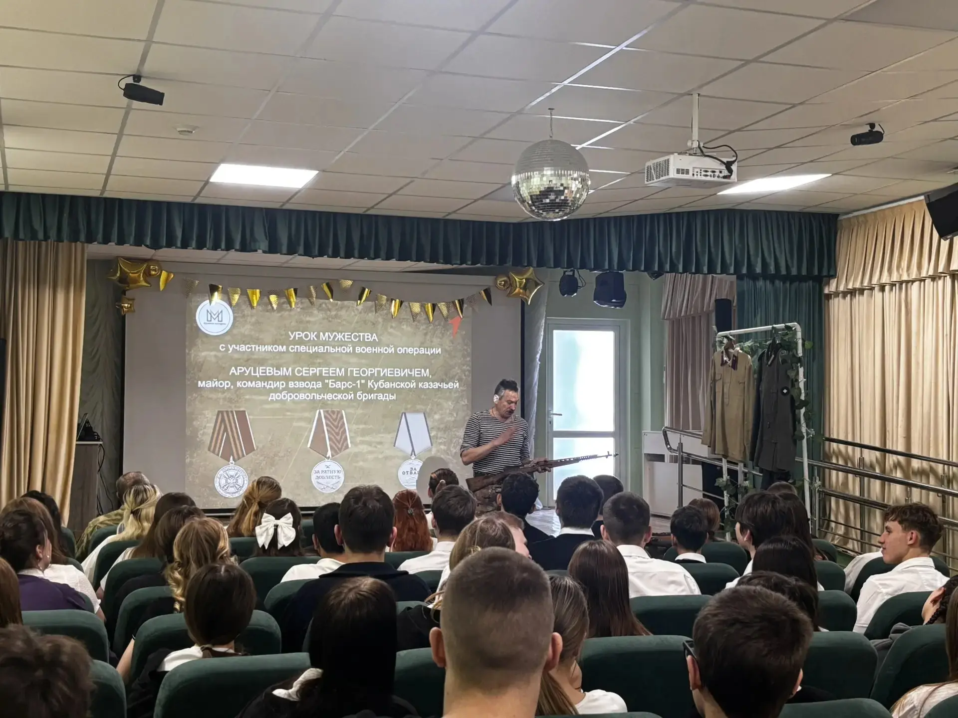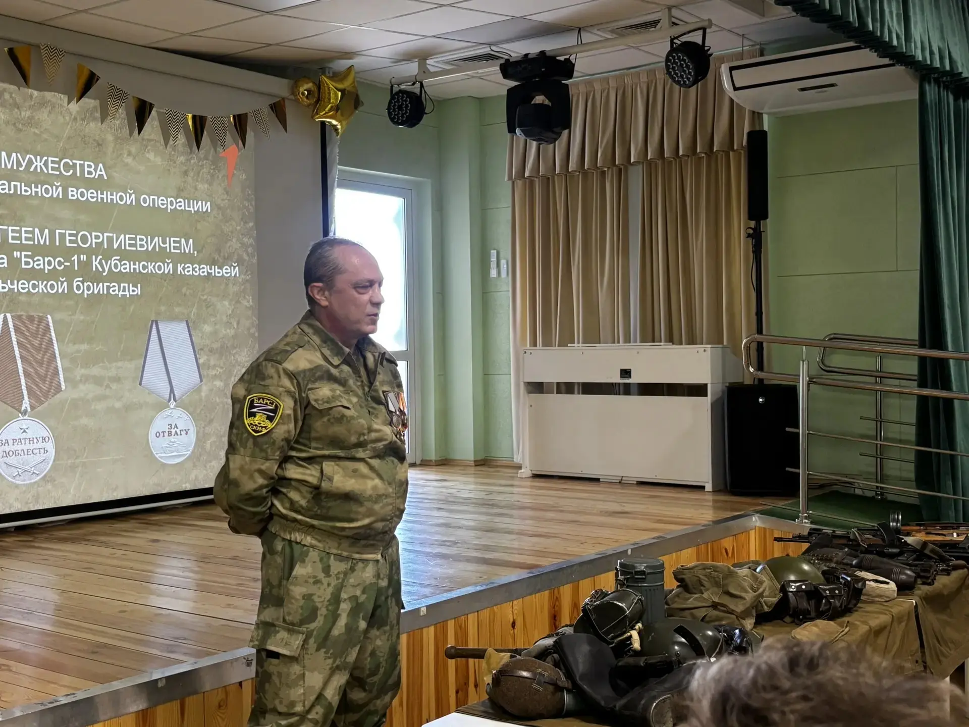 🔰Главным героем мероприятия стал Аруцев Сергей Георгиевич, майор, командир взвода Барс-1 Кубанской казачьей добровольческой бригады. Награждён государственными наградами «За Отвагу", "За храбрость 2 степени", " За ратную доблесть", "Участник СВО".