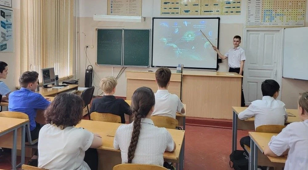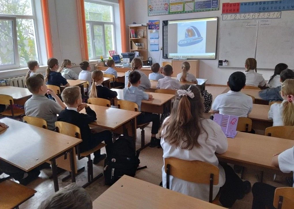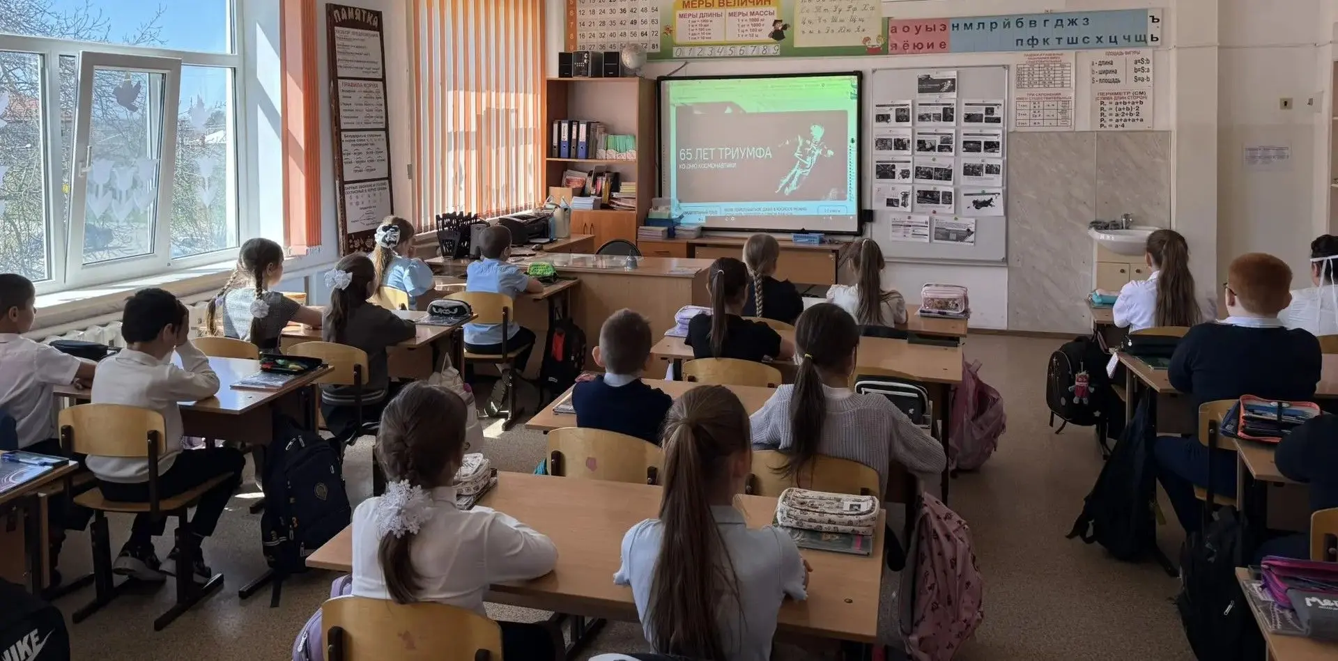 🙋Школьники посмотрели и обсудили видеоролик-интервью с генеральным директором госкорпорации «Роскосмос» Дмитрием Бакановым, видеоролики «Зачем нам космос, если мы живем на Земле?», «65 лет триумфа. Ко Дню космонавтики»