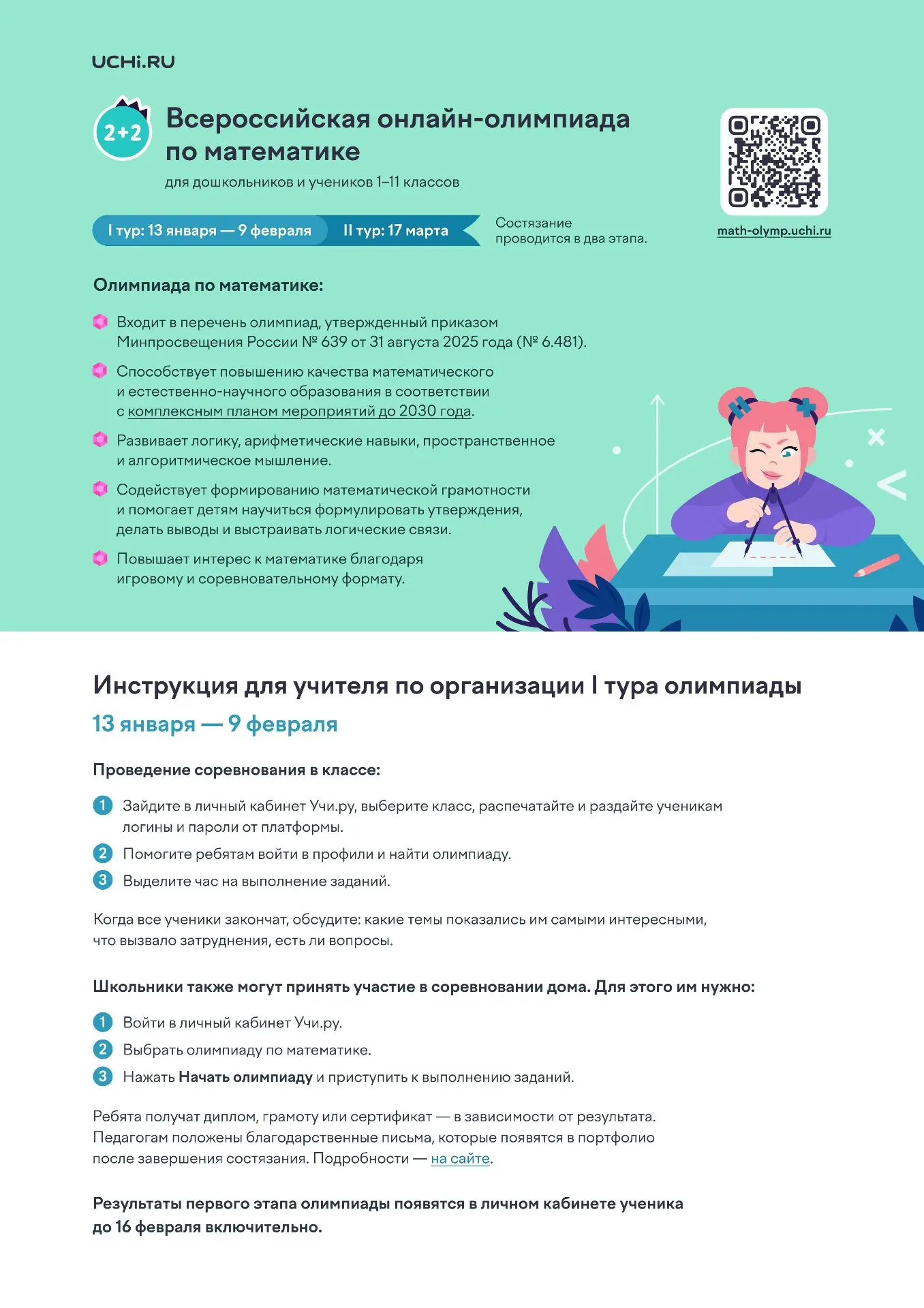 С 13 января по 9 февраля пройдет онлайн олимпиада по математике для 1-11 классов.