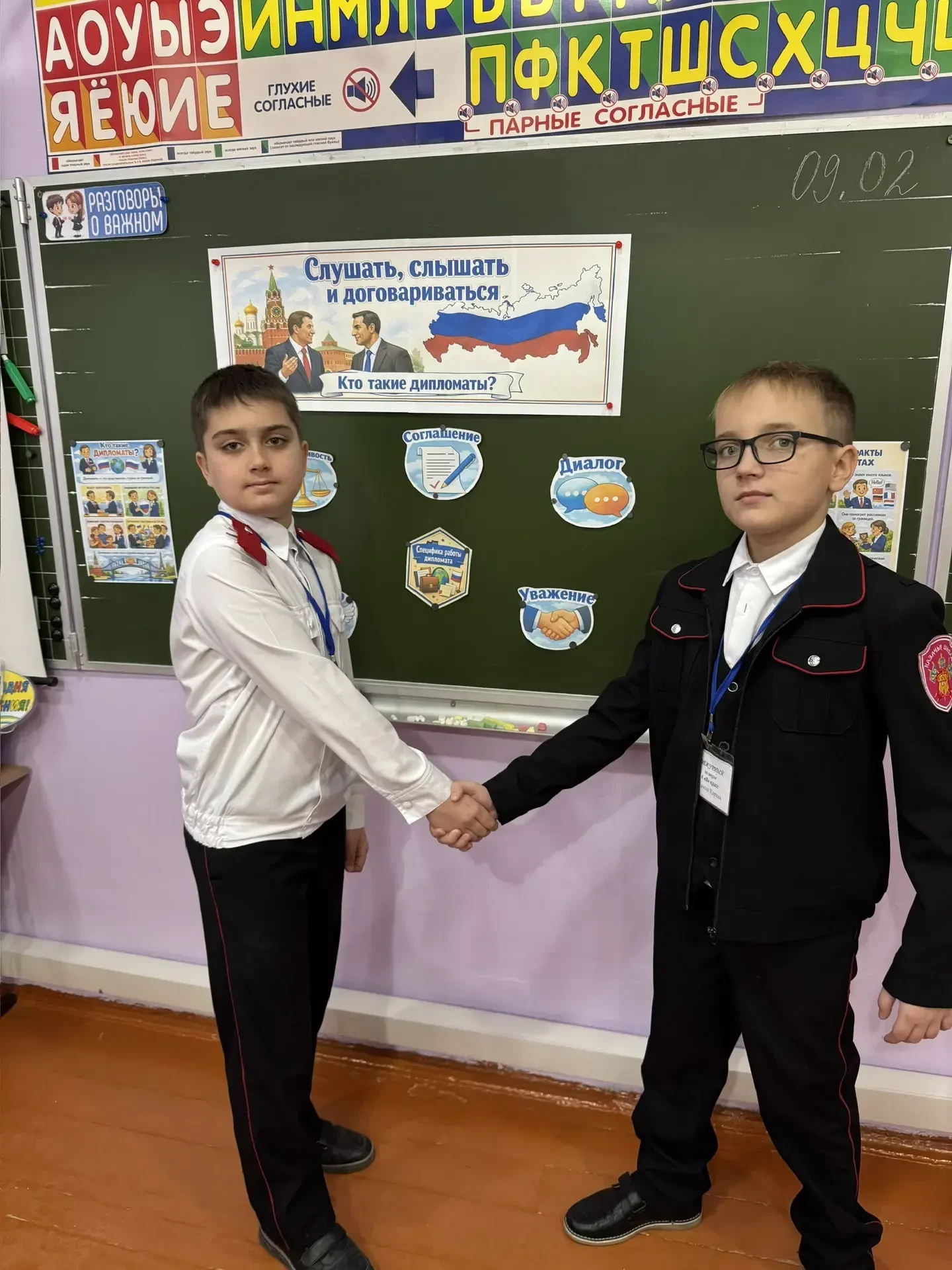 Сегодня, 9 февраля, в школе прошло занятие в рамках федерального проекта «Разговоры о важном» на тему «Слушать, слышать и договариваться. Кто такие дипломаты?». Занятие было приурочено ко Дню дипломатического работника, который отмечается 10 февраля.