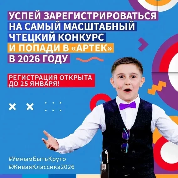 ✅ Международный конкурс юных чтецов «Живая классика» — ежегодно проводится с 2011 года для детей 5-11 классов из России и других стран, в том числе изучающих русский язык как иностранный. Это самый масштабный детский литературный проект в России. Приём заявок для регистрации на конкурс продлится до 25 января 2026 года.