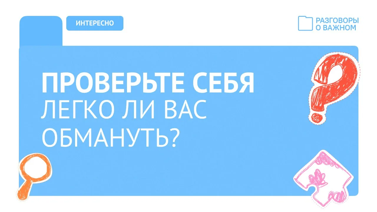 На этой неделе на «Разговорах о важном» состоялся важный диалог о безопасности в сети Интернет, о том, как защитить свои персональные данные и не стать жертвой кибермошенников. В ходе трансляции по подготовке к занятию многие педагоги спрашивали, как можно на практике проверить полученные знания вместе с учениками. Делимся полезной подборкой тестов проекта "ЦИФРАтека.дети" от Альянса по защите детей в цифровой среде. Квизы можно проходить дома с семьёй или в формате постразговора.