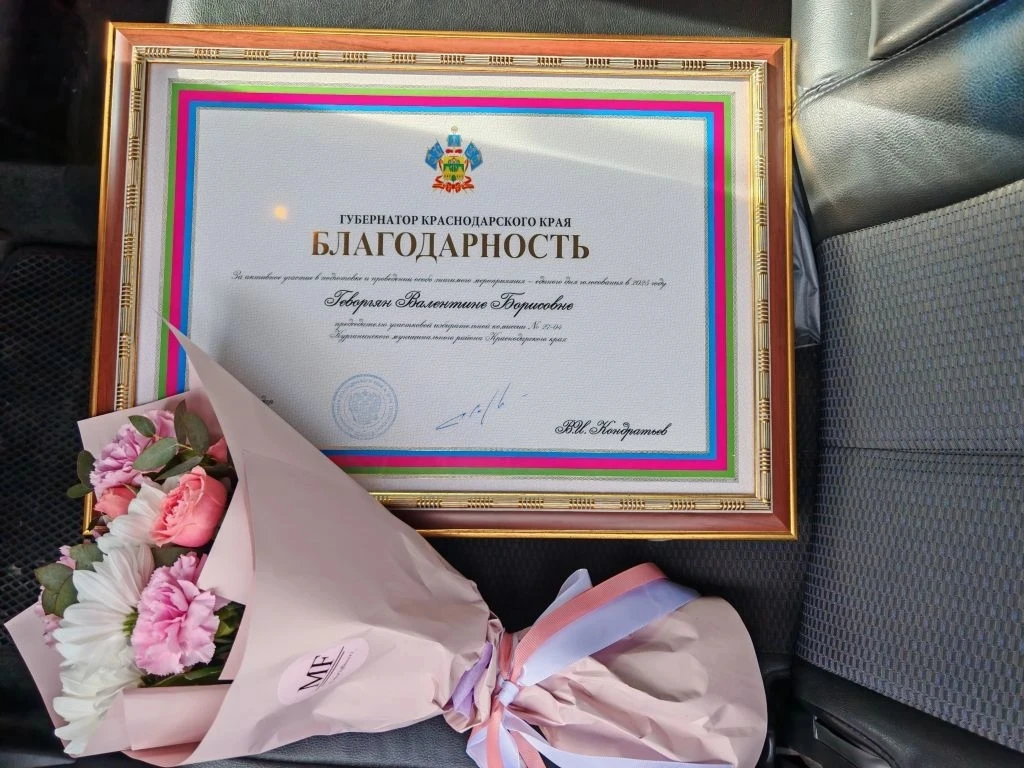 💼 На сессии директору нашей школы В.Б. Геворгян вручена была Благодарность от главы администрации Краснодарского края В.И. Кондратьева за активную позицию как председателя избирательной комиссии №27-04 в единый день голосования 2025 года. 🎖