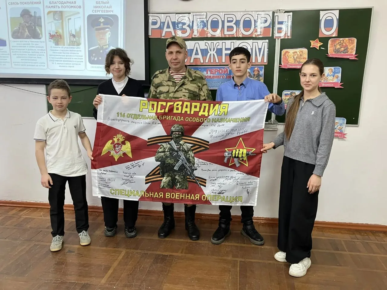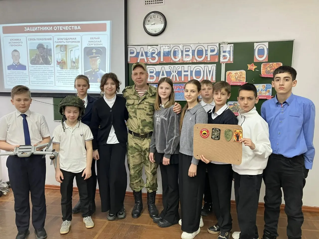 Дмитрий Владимирович рассказал ребятам о том, что значит быть защитником Родины, о боевом товариществе и важности мира. Для третьеклассников это была не просто беседа, а живой урок мужества и пример честного служения Отечеству.