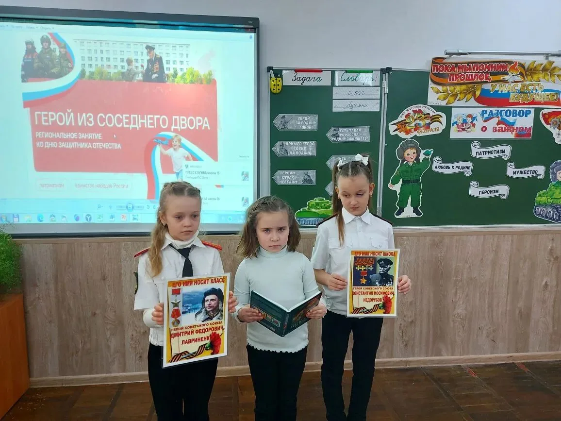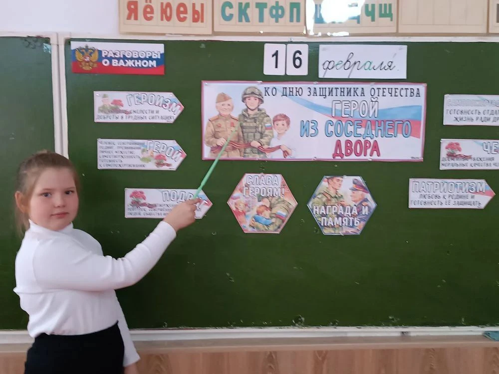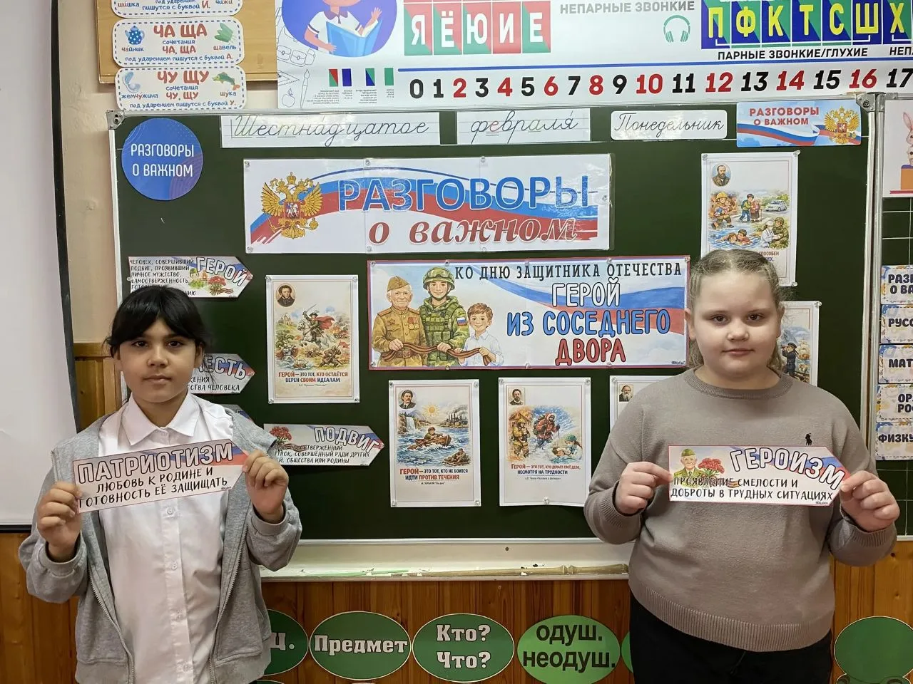 Сегодня в нашей школе прошли внеурочные занятия «Разговоры о важном», приуроченные ко Дню защитника Отечества. Тема встречи — «Герой из соседнего двора» — выбрана не случайно. Мы говорили о том, что настоящие герои живут не только на страницах книг или в кадрах кинохроники. Они живут рядом с нами: в соседней квартире, в нашем дворе, в нашей семье.