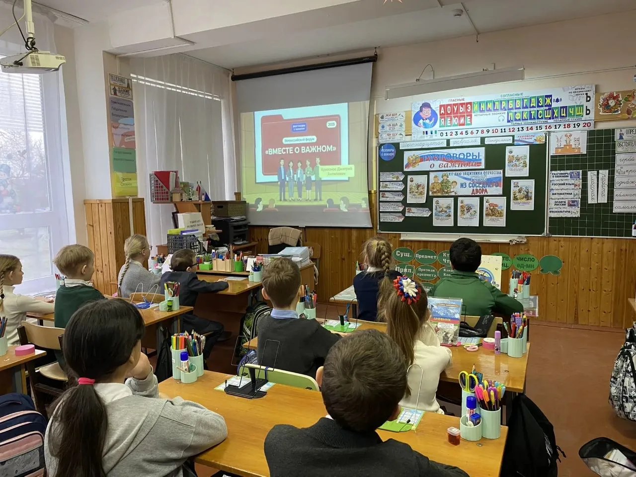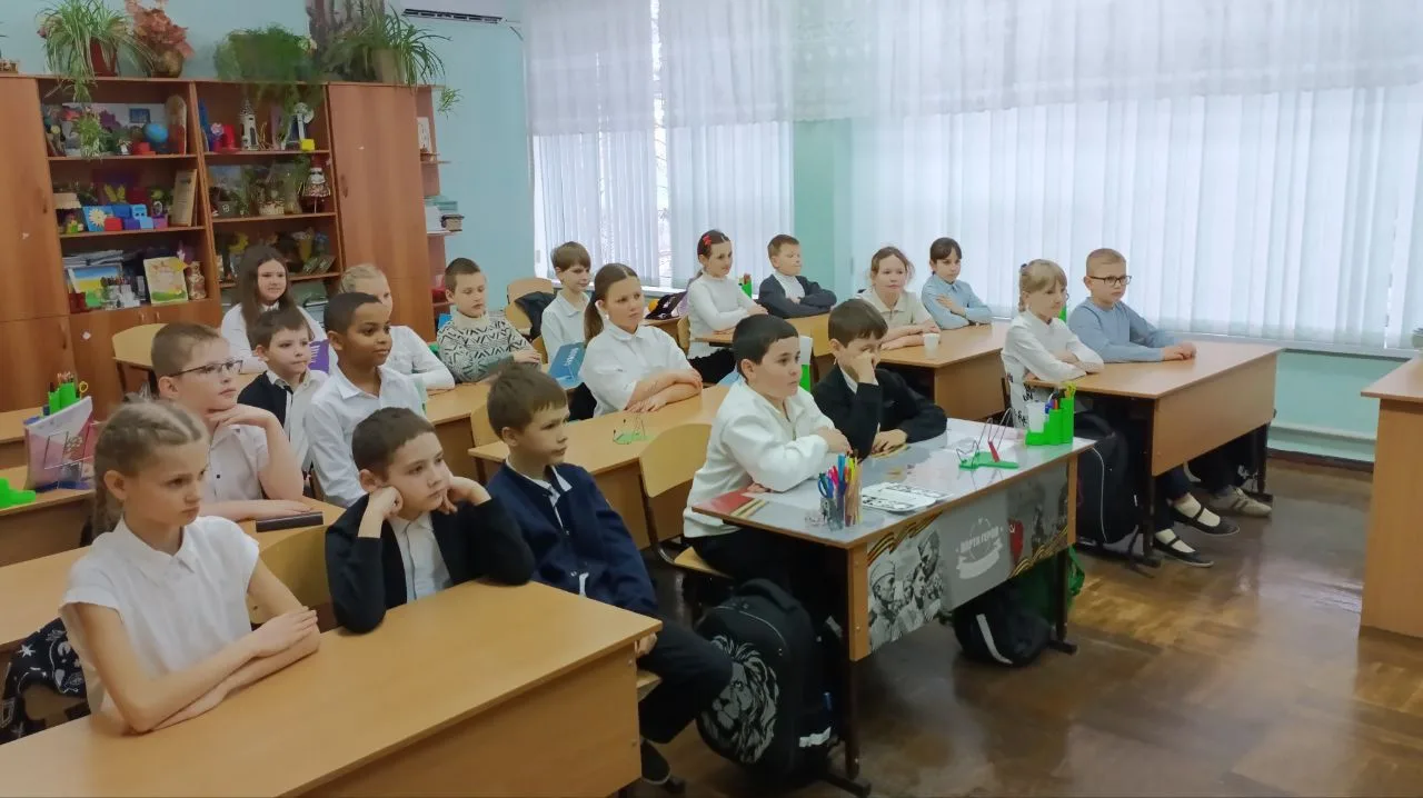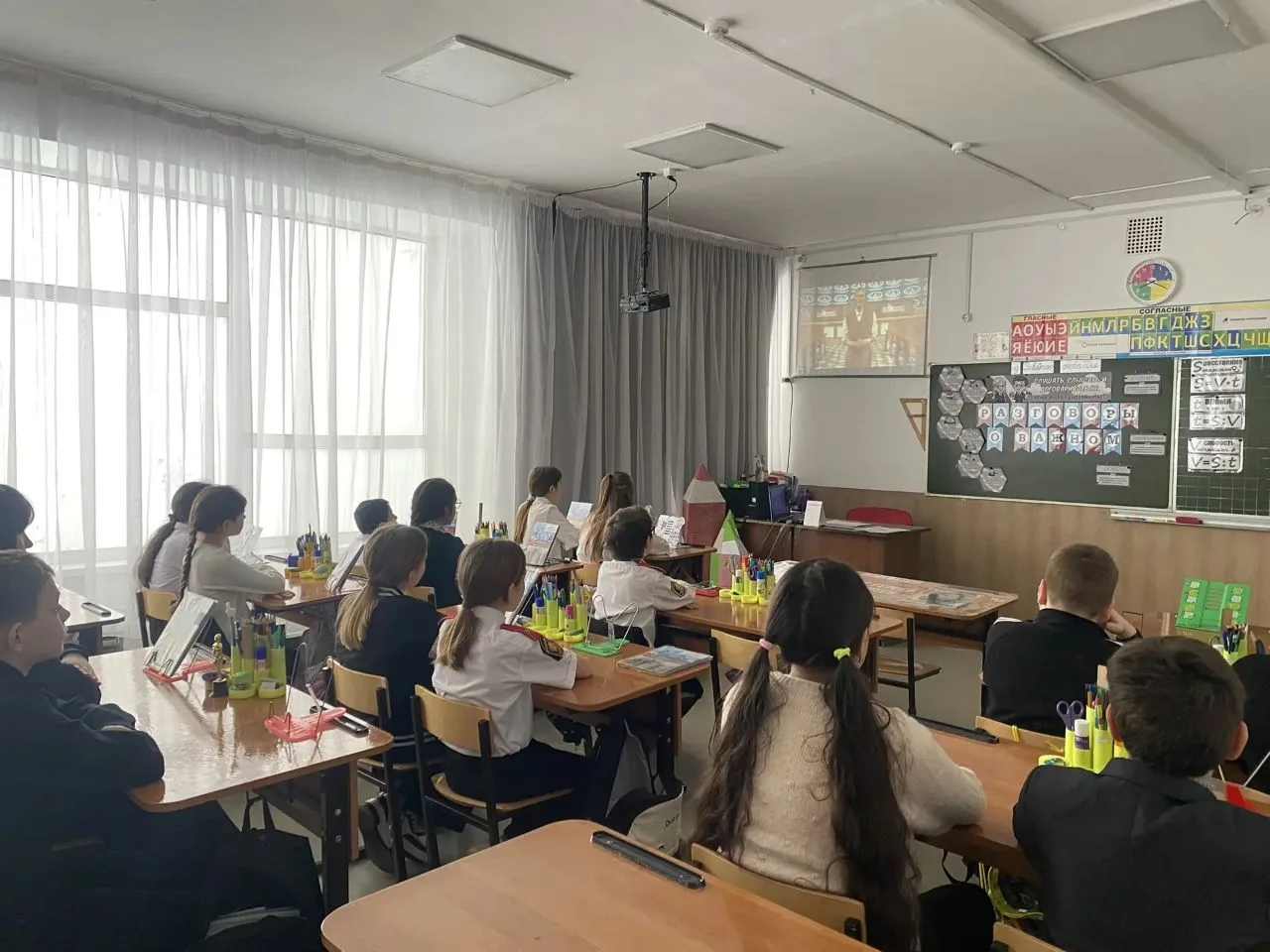 После линейки все классы отправились на внеурочное занятие. Тема сегодняшнего урока — «Герой из соседнего двора», приуроченная ко Дню защитника Отечества. Ребятам предстоит поговорить о том, что герои живут не только в книгах и фильмах, но и рядом с нами: среди соседей, родных и близких людей, готовых прийти на помощь и защитить Родину.